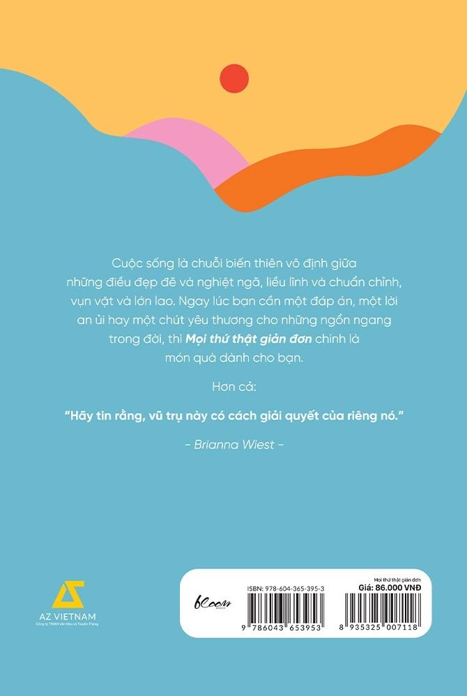 Mọi Thứ Thật Giản Đơn Cuộc sống là chuỗi biến thiên vô định giữa những điều đẹp đẽ và nghiệt ngã, liều lĩnh và chuẩn chỉnh, vụn vặt và lớn lao. Ngay lúc bạn cần một đáp án, một lời an ủi hay một chút yêu thương cho những ngổn ngang trong đời, thì Mọi thứ thật giản đơn chính là món quà dành cho bạn. Hơn cả: “Hãy tin rằng, vũ trụ này có cách giải quyết của riêng nó.”