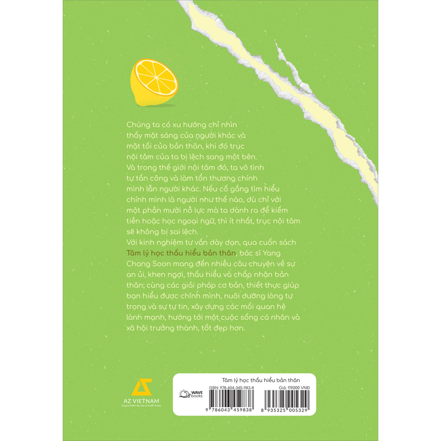 Với kinh nghiệm tư vấn tâm lý dày dạn, qua cuốn sách T M LÝ HỌC THẤU HIỂU BẢN TH N, bác sĩ Yang Chang Soon mang đến nhiều câu chuyện về sự an ủi, khen ngợi, thấu hiểu và chấp nhận bản thân; cùng các giải pháp cơ bản, thiết thực giúp bạn biết cách nhìn thấu người khá, thấu hiểu chính mình với lòng tự trọng và sự tự tin được nuôi dưỡng; xây dựng các mối quan hệ lành mạnh, có cuộc sống cá nhân và xã hội trưởng thành, tốt đẹp hơn. Đó vốn là những điều cần thiết đối với mỗi người.