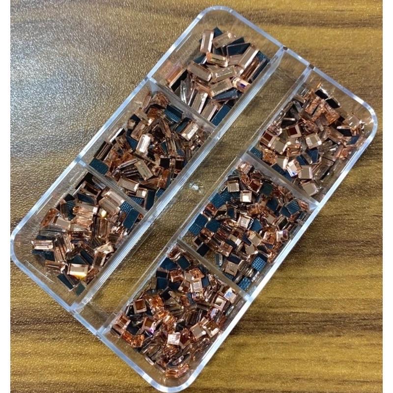 ✨Đá Khối Chân Bằng Chữ Nhật Mix Size, 6 Ô, Đá Nail Hình Vuông Và Chữ Nhật, Trang Trí Móng Sang Trọng, Làm Nail Tinh Tế