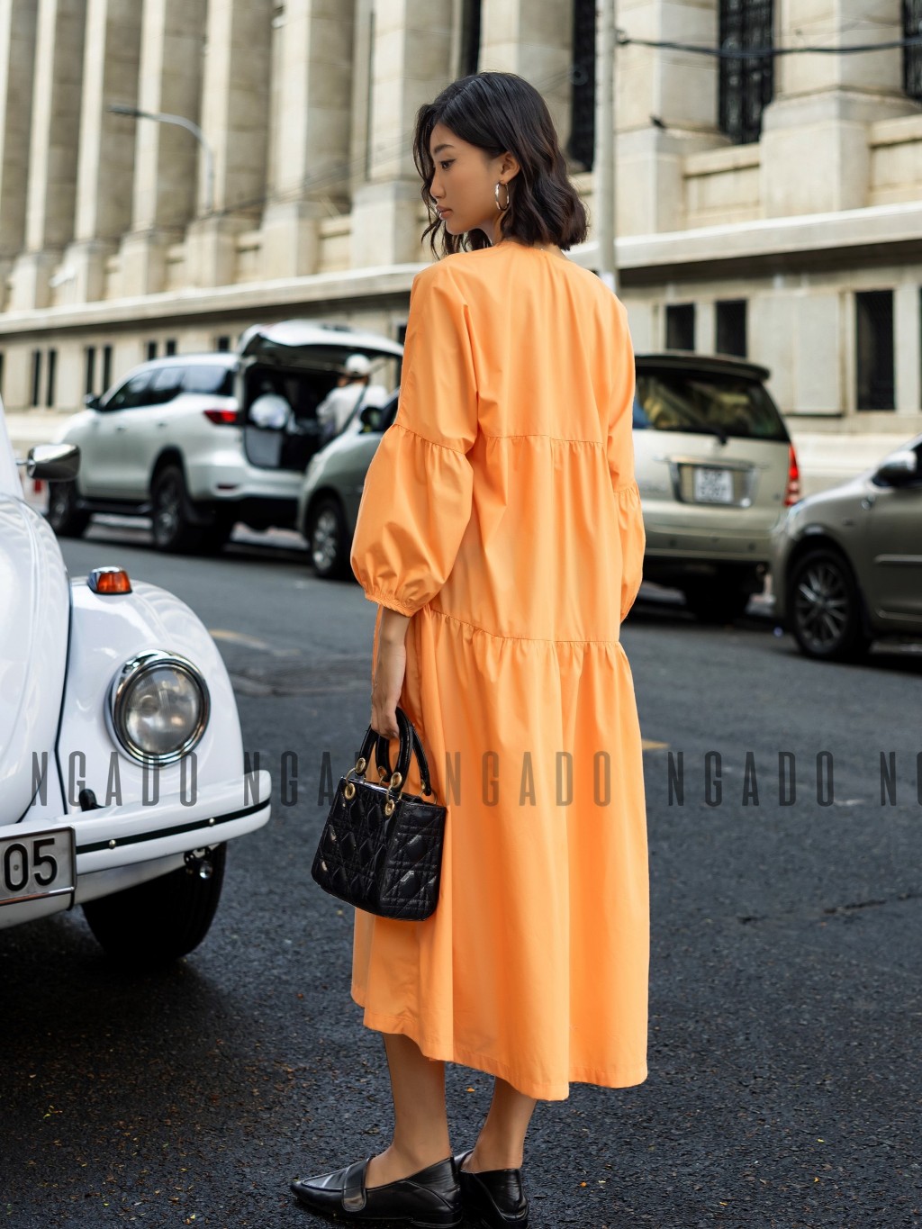 ✨Đầm babydoll cam dài tay NGADO , đầm nữ , Đầm suông , Đầm phom rộng