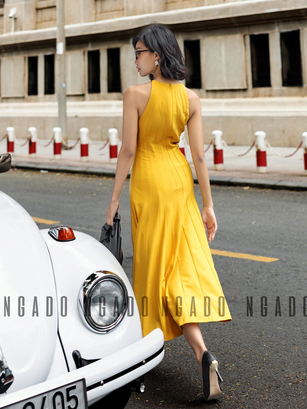 ღ THÔNG TIN SẢN PHẨM: Tên sản phẩm: Đầm vàng cổ yếm Chất liệu: Chất gân ý· Chi tiết sản phẩm: không lót, không túi Thông số size: S, M, L,