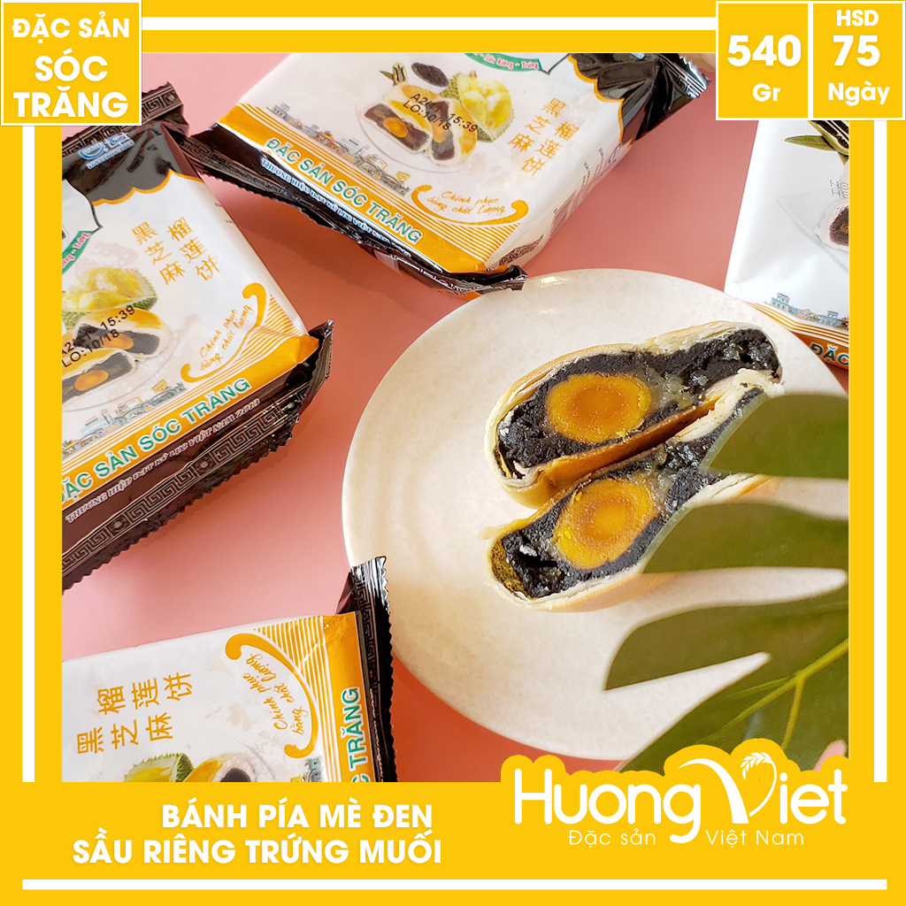 ✨Đặc Sản Sóc Trăng - Bánh Pía Mè Đen Sầu Riêng Trứng Muối 540G, Bánh Pía Sóc Trăng Tân Huê Viên Túi Gồm 4 Bánh Bao Bì Riêng Biệt