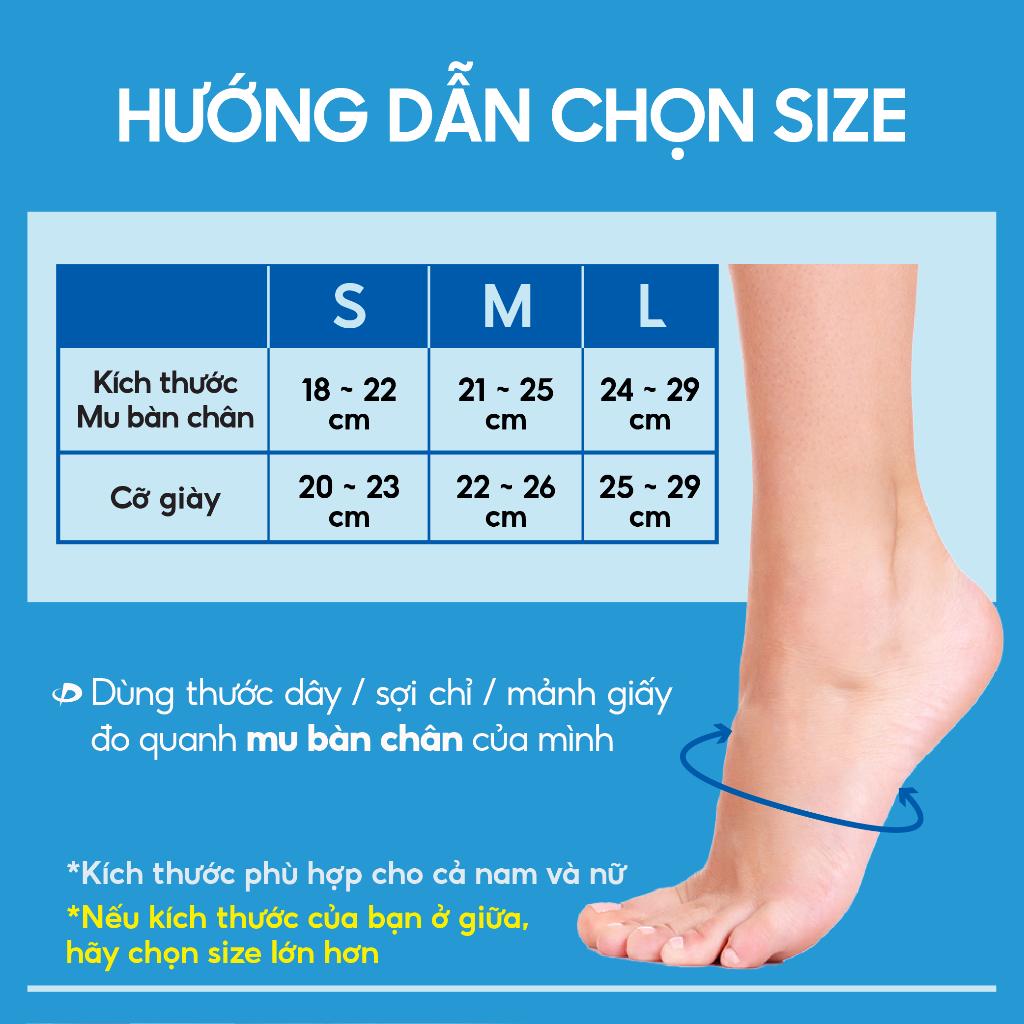 - Cảm nhận sự nhẹ nhàng của mắt cá chân trong quá trình bạn chạy Hoàn hảo để sử dụng hàng ngày. Mã phân loại sản phẩm: AP166003 : S (18-22cm) AP166004 : M (21-25cm) AP166005 : L (24-29cm) *Đo theo chu vi lòng bản chân Hướng dẫn bảo quản: bảo quản ở nơi sạch và khô ráo Lưu ý khi sử dụng :