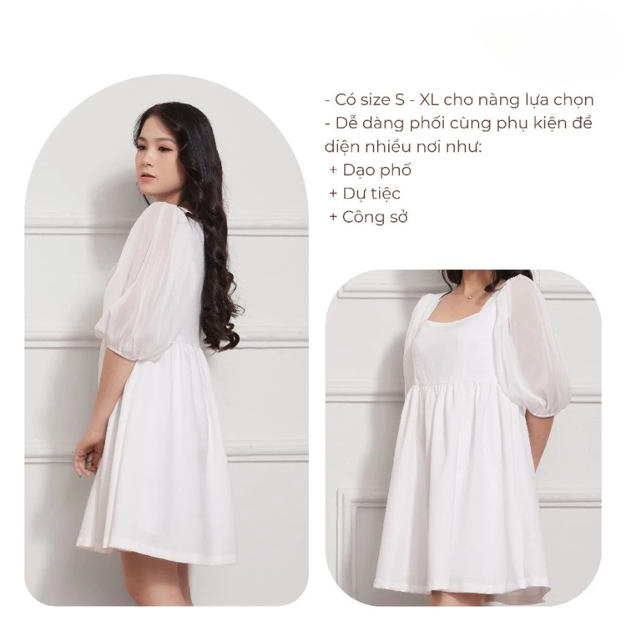 ღ THÔNG TIN SẢN PHẨM: Tên sản phẩm: Đầm trắng cổ xéo Thông số size: S, M, L, XL Chất liệu: Chất xốp Chi tiết sản phẩm: Không lót, không túi