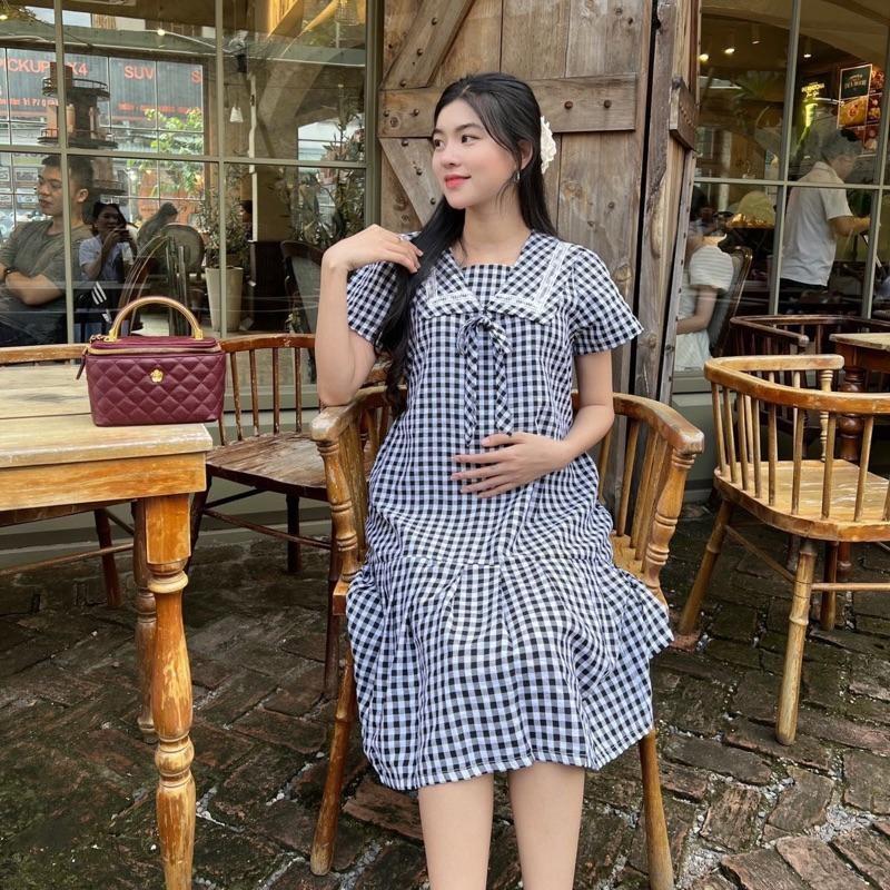 ÔNG TIN SẢN PHẨM: Đầm bầu karo cổ thuỷ thủ phom babydol năng động, trẻ trung. Chất vải cotton hàn nhẹ mát, thấm hút mồ hôi. Điểm nhấn tay phồng nhẹ dễ thương khi mặc