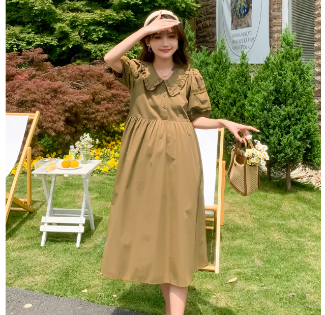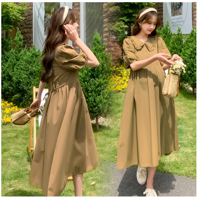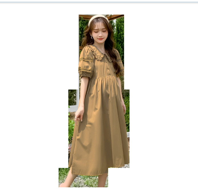 ✨ĐẦM BẦU VÁY BẦU CỔ SEN CÀ PHÊ SỮA sau sanh có nút mở cho bé ti