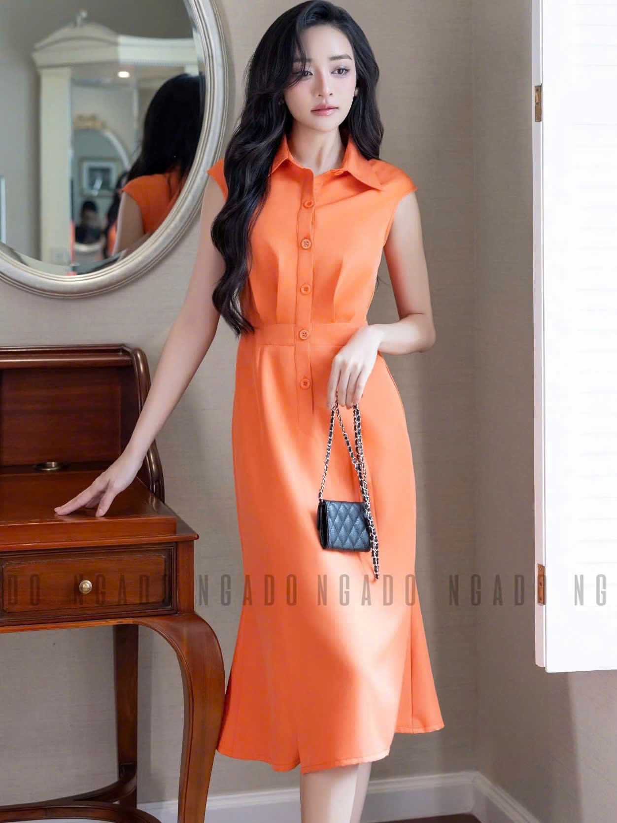 ✨Đầm cam eo xếp ly NGADO , đầm thiết kế , đầm công sở , dạo phố