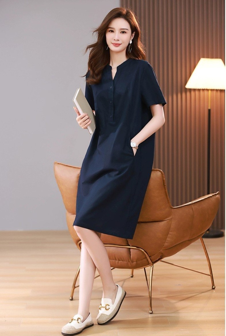 ღ THÔNG TIN SẢN PHẨM: Tên sản phẩm: Đầm sơ mi xanh navy Chất liệu: Chất gân ý Chi tiết sản phẩm: không lót, không túi Thông số size: S, M, L,