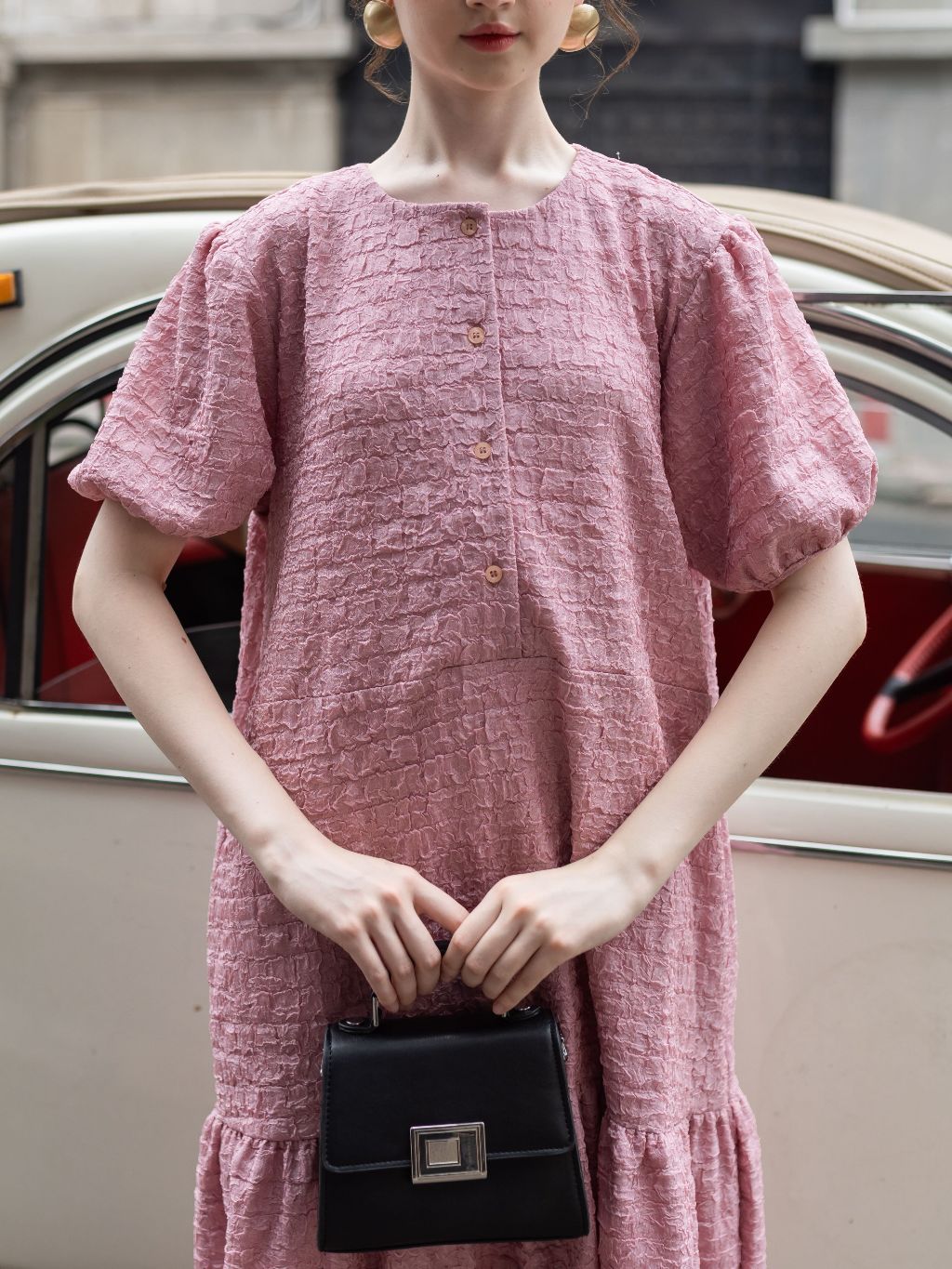 ღ THÔNG TIN SẢN PHẨM: Tên sản phẩm: Đầm hồng cổ tròn Chất liệu: Chất gấm trơn dày· Chi tiết sản phẩm: không lót, không túi Thông số size: S, M,