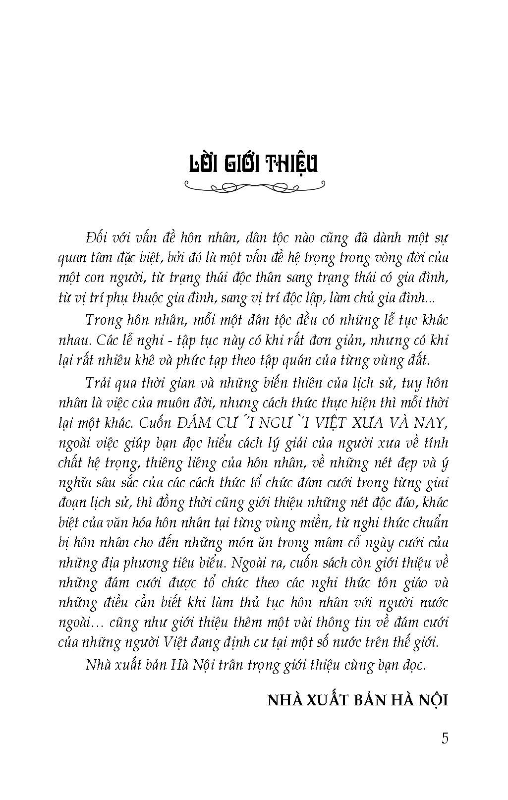 Những lý giải của người xưa về tính chất hệ trọng, thiêng liêng của hôn nhân, về những nét đẹp và ý nghĩa sâu sắc trong phong tục, nghi thức cưới hỏi qua từng giai đoạn lịch sử với những nét độc đáo, thuần phong mỹ tục trong truyền thống văn hoá của dân tộc Việt tại từng vùng miền khác nhau