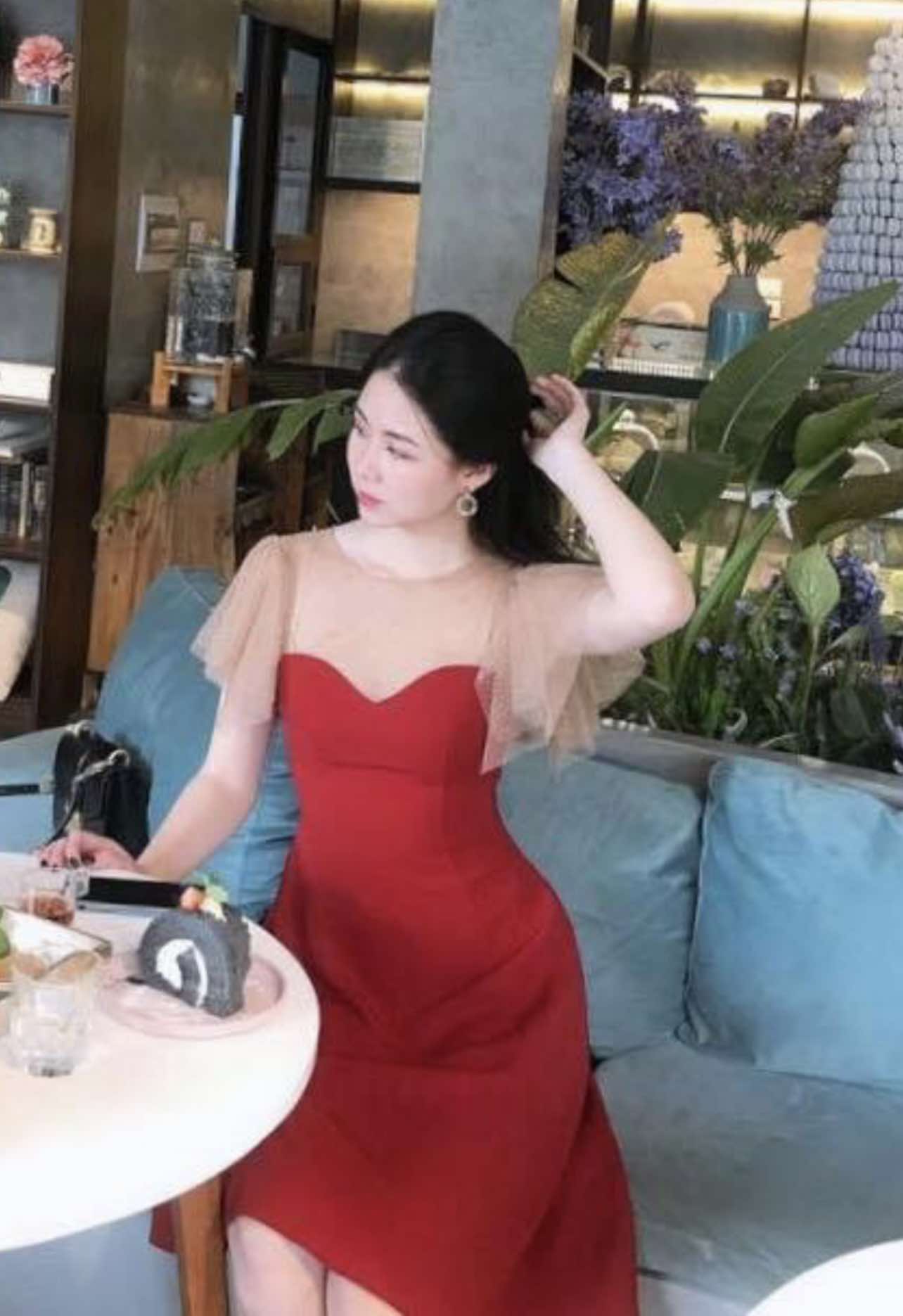 VÁY DẠ HỘI TRUNG NIÊN, SUI GIA MÀU ĐỎ KIM SA NỔI BẬT, SANG TRỌNG