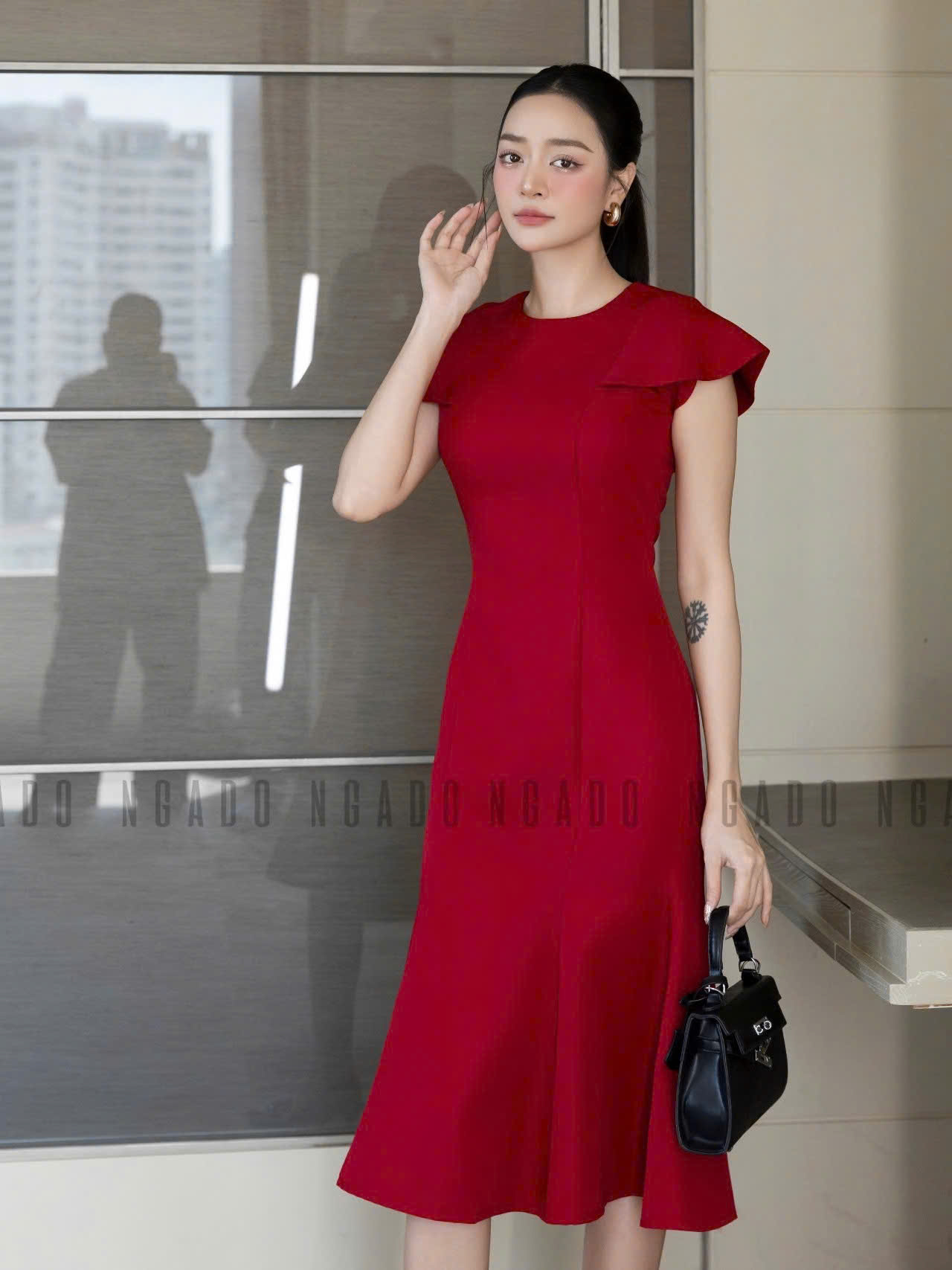 ✨Đầm đỏ đuôi cá ngắn tay NGADO , đầm nữ , Đầm dự tiệc sang chảnh