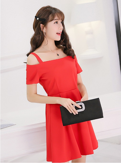 ღ THÔNG TIN SẢN PHẨM: Tên sản phẩm: Đầm đỏ bẹt vai Chất liệu: Chất gân ý Chi tiết sản phẩm: không lót, không túi Thông số size: S, M, L,