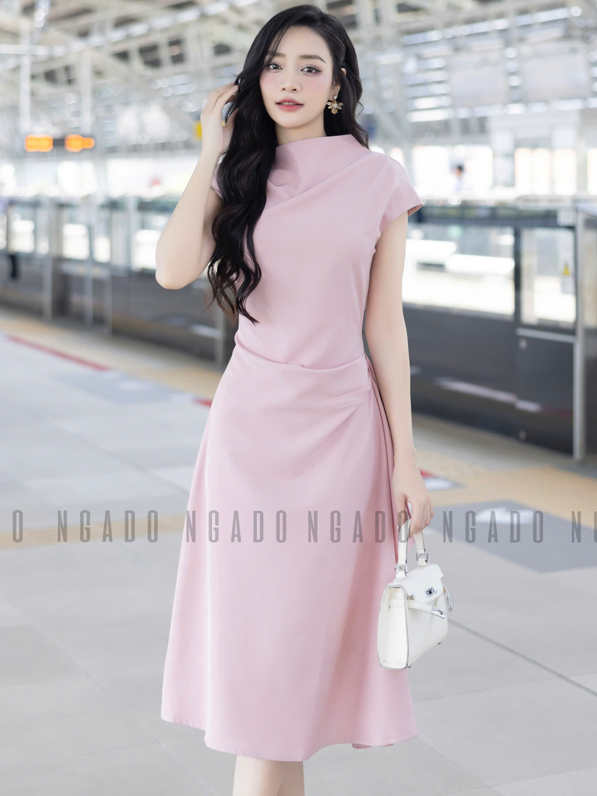 ✨Đầm hồng cổ cao vạt xéo NGADO