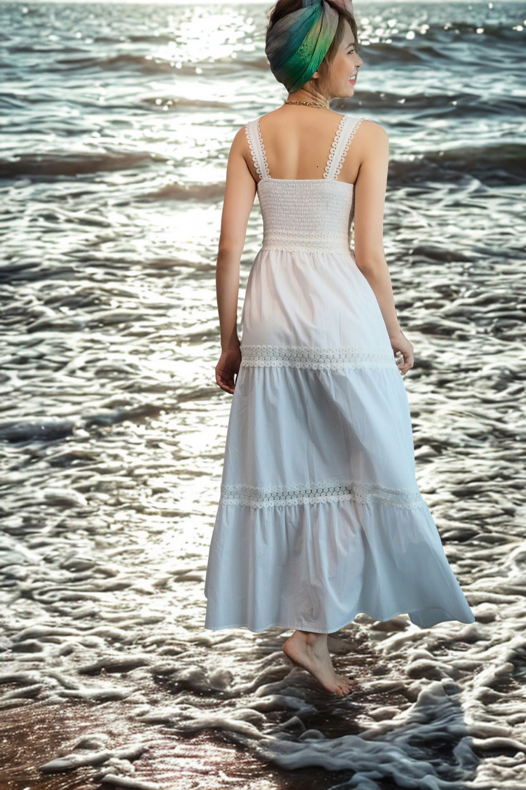 Chất liệu: Cotton mềm mại, thoáng khí, thấm hút mồ hôi tốt, mang lại cảm giác dễ chịu suốt ngày dài, đặc biệt phù hợp với thời tiết mùa hè. Nghệ nhân cắt may: Thanh Thuỷ, Bích Hoà Cắt may thủ công tinh tế tại Hity Atelier, Nha Trang, Việt Nam Thiết kế đầm maxi hai dây, dáng xòe tầng tạo độ bồng bềnh, thướt tha mỗi khi di chuyển. Cổ vuông/ngang và hai dây bảng mai khoe khéo bờ vai trần gợi cảm. Điểm nhấn ren/viền trang trí ở phần ngực và các đường nối tầng váy tạo sự duyên dáng và nữ tính, làm nổi bật thiết kế. Chiết eo, lưng thun vừa tôn dáng vừa tạo sự thoải mái tối đa. Hoàn hảo cho những chuyến du lịch biển, dạo phố cuối tuần, những buổi hẹn hò lãng mạn hay tham dự các sự kiện ngoài trời nhẹ nhàng. Mùa hè rồi sẽ ra sao nếu thiếu đi maxi cả bầu trời phong cách?!Mùa hè đến mang theo những ngày nắng rực rỡ, những cơn gió mát lành và cả bầu trời sôi động của những hoạt động vui chơi, du lịch. Giữa muôn vàn lựa chọn trang phục, maxi chính là "nữ hoàng" không thể thiếu trong tủ đồ của bất kỳ cô nàng nào.Tại sao ư?