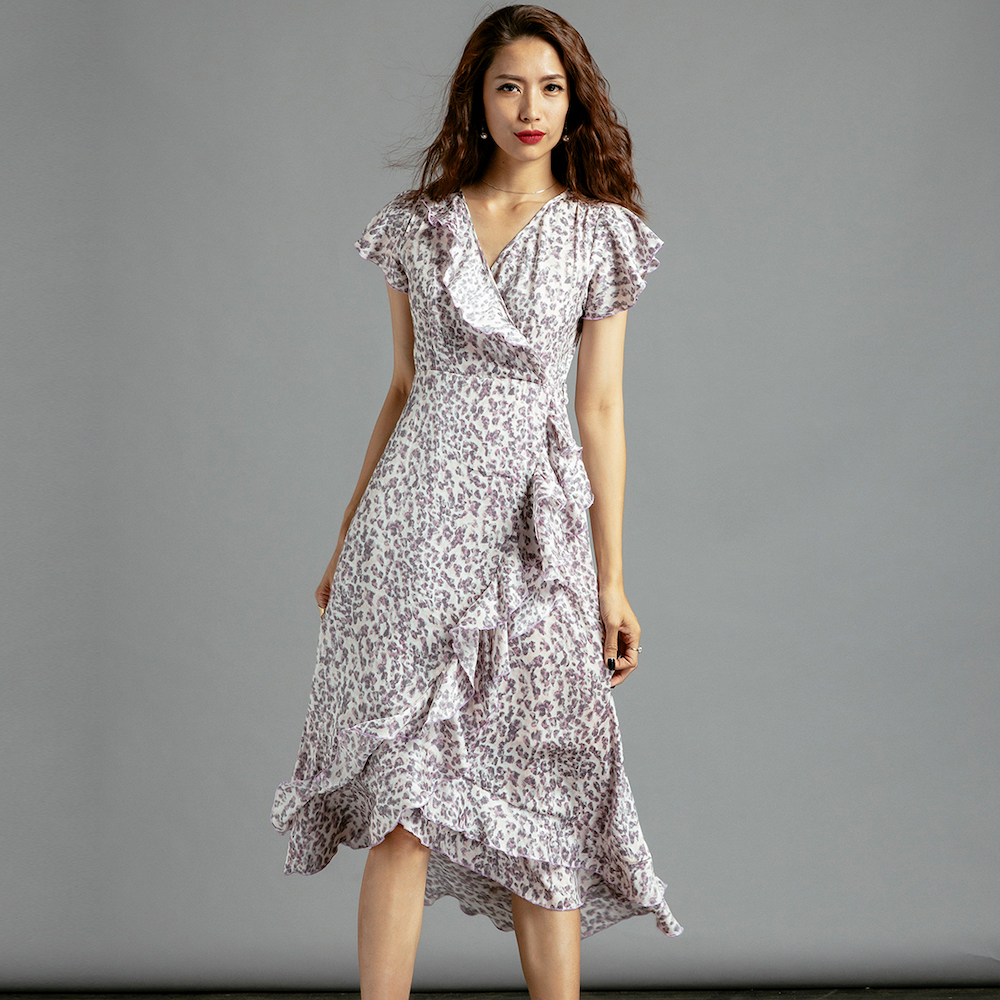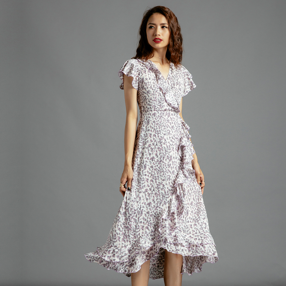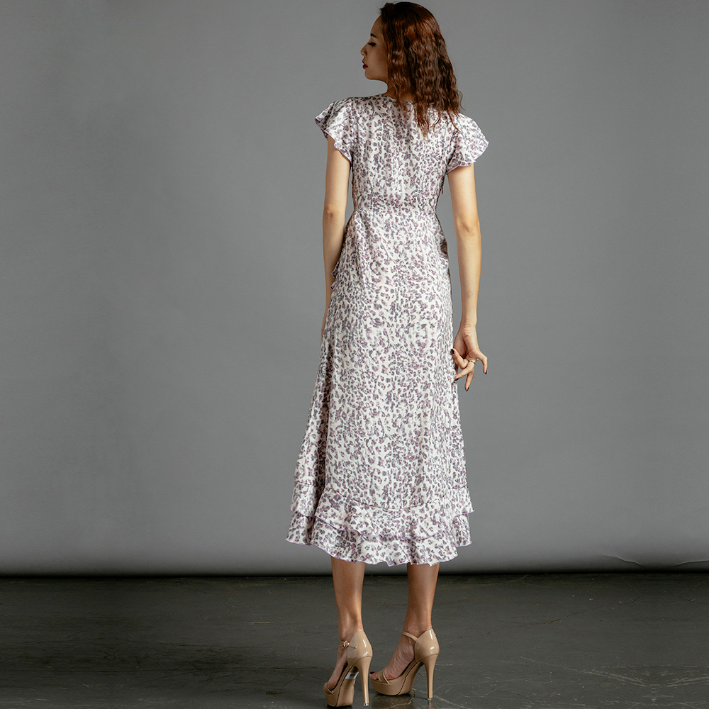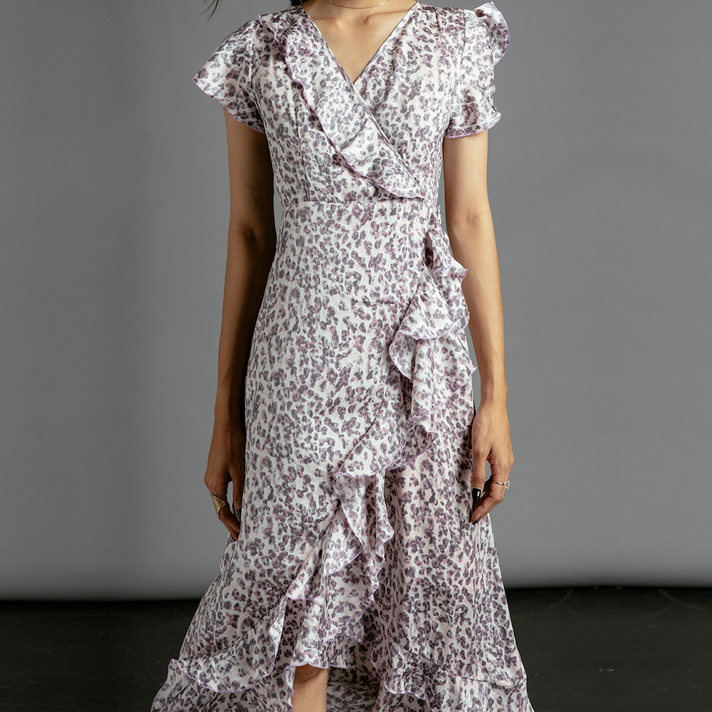 Đầm Midi Đắp Vạt mang một chút hơi thở cổ điển vintage trong thiết kế với những điểm xuyến bèo nhún thướt tha. Trên nền satin in hoạ tiết da beo nhí, chiếc Đầm Midi Đắp Vạt lại thổi hồn tự do hoang dã.