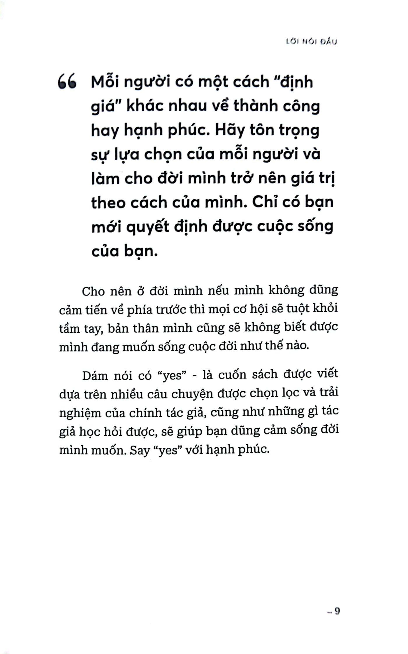 Với tất cả những điều này, hy vọng rằng cuốn sách “Dám Nói Có “Yes”” không chỉ là nguồn cảm hứng mà còn là một hành trang đầy đủ cho những ai muốn tạo ra sự thay đổi trong cuộc sống của m.ình.