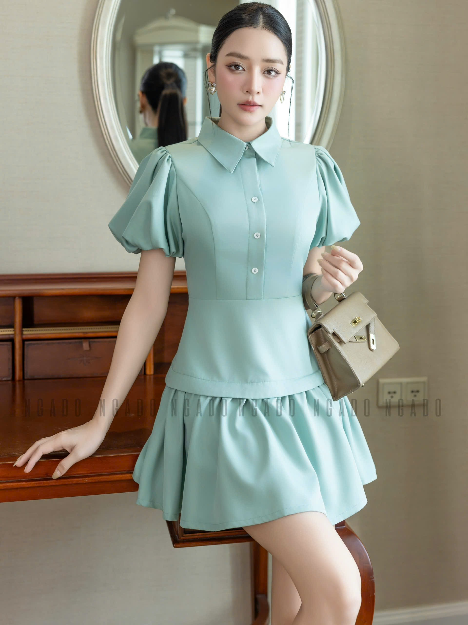 ✨Đầm xanh mint tùng tầng NGADO , đầm kiểu Nữ , đầm công sở , dự tiệc