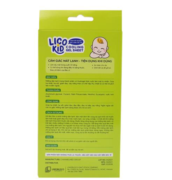 DÁN HẠ SỐT LICO KIDMiếng dán chườm lạnh, hạ sốt nhanh Cooling Sheet với ưu điểm giảm sốt nhanh chóng, kéo dài đến 10 giờ và tuyệt đối an toàn khi sử dụng với các loại thuốc khác, cảm giác thoải mái s...