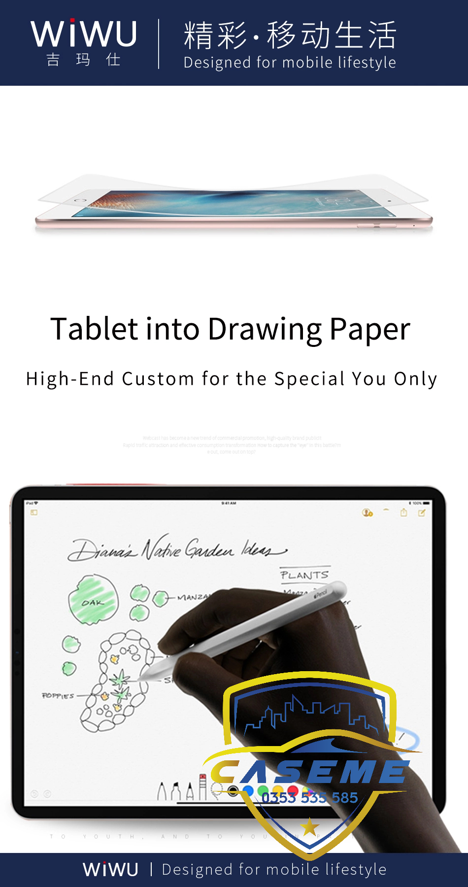 - Chống vân tay, chống chói, độ trong suốt cao Dán màn hình iPad AG Paper-like WIWU với thiết kế để khi viết và vẽ trên iPad cho bạn cảm giác như viết trên giấy, PaperLike mang đến sự chính xác, dễ dàng kiểm soát bút Apple Pencil khi viết và vẽ. Độ truyền sáng 80%, Cao hơn tấm bảo vệ màn hình bình thường Dán màn hình chống vân tay, chống chói, hiển thị hình ảnh với độ nét cao, chất kết dính silicon giúp quá trình dán dễ dàng và không ảnh hưởng tới độ nhạy cảm ứng.
