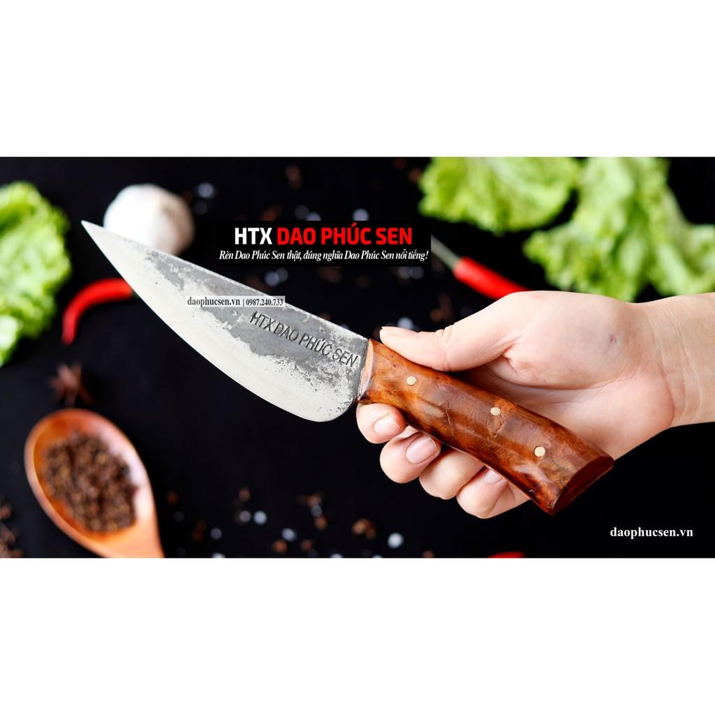 Tên sản phẩm: Dao Phúc Sen Bản PhiLe 02 - Chất liệu: 100% thép nhíp ô tô được lựa chọn và kiểm duyệt kỹ càng. - Chất liệu cán: gỗ cẩm chỉ núi - Kích