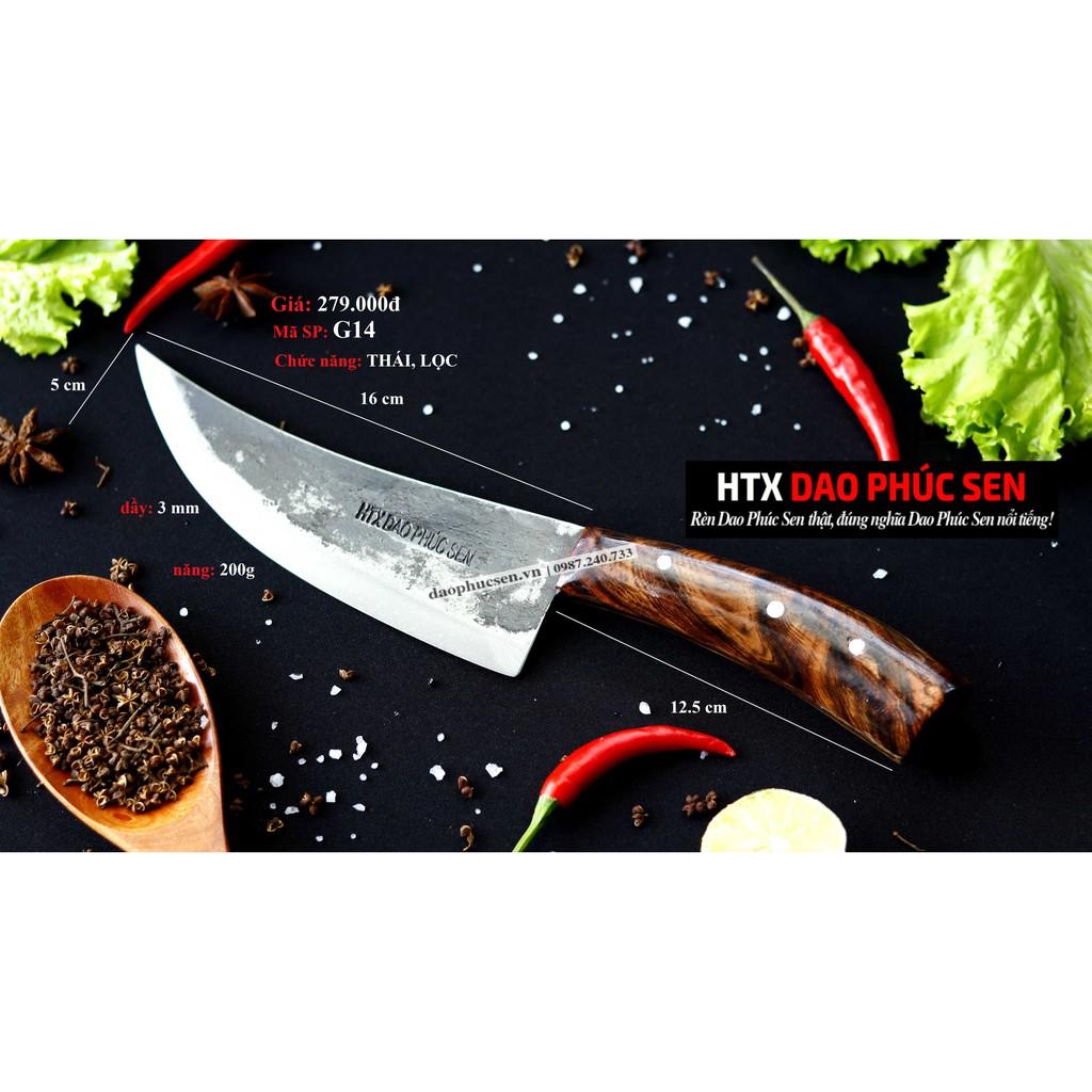Tên sản phẩm: Dao Phúc Sen dao Thái Kiểu 04 GT04 - Chức năng: chuyên thái thịt, rau củ - Chất liệu: 100% thép nhíp ô tô được lựa chọn và kiểm duyệt kỹ càng.
