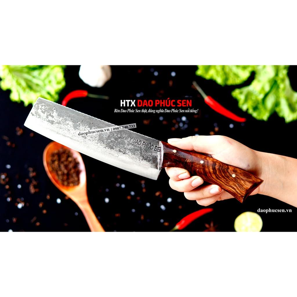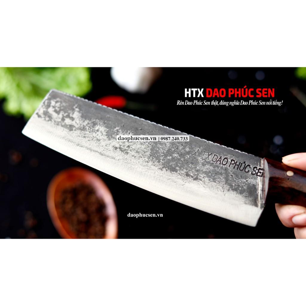 DAO PHÚC SEN - Dao thái 22 cán mun - Chức năng: chuyên thái thịt và rau củ - Kích thước: Lưỡi: 22cm, cán: 12cm, rộng: 7,5cm, dầy: 1ly, trọng lượng: 280g - Chất liệu