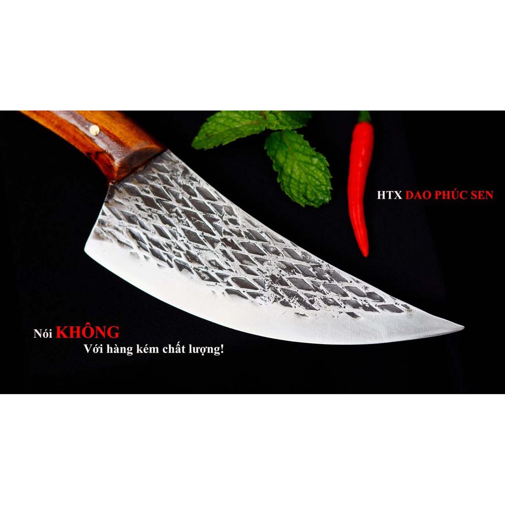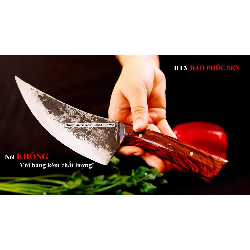 Dao Phúc Sen - Dao Thái Nhỏ Mini (Vỏ Gỗ Cẩm Chỉ) - Chức năng: chuyên chặt thái cá, chặt gà, lọ - Kích thước: Lưỡi: 26cm, cán: 12,5cm, rộng: 6,5cm, dầy: 4ly, trọng lượng: