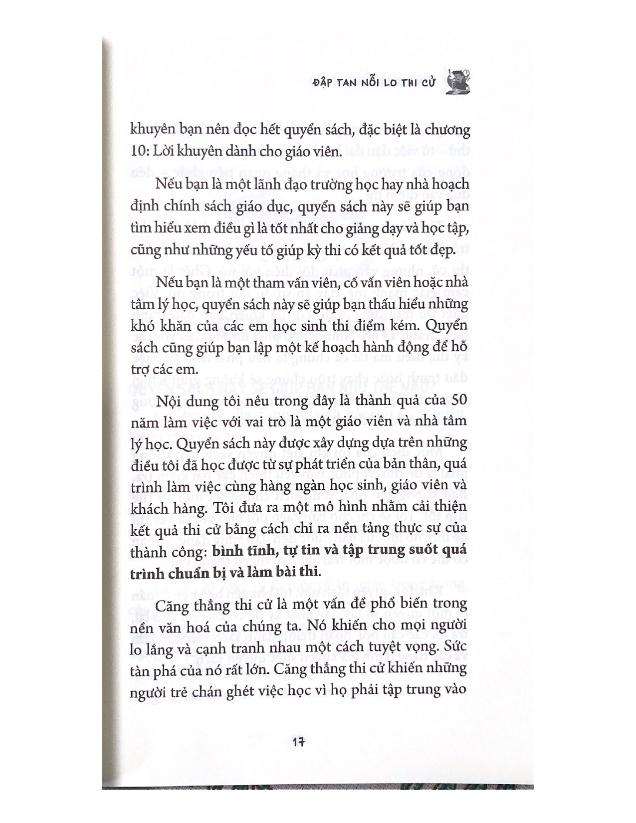 ĐẬP TAN NỖI LO THI CỬ được xây dựng dựa trên những điều Ben Bernstein đã học được từ sự phát triển bản thân, cũng như qua quá trình làm việc cùng hàng ngàn học sinh, giáo viên