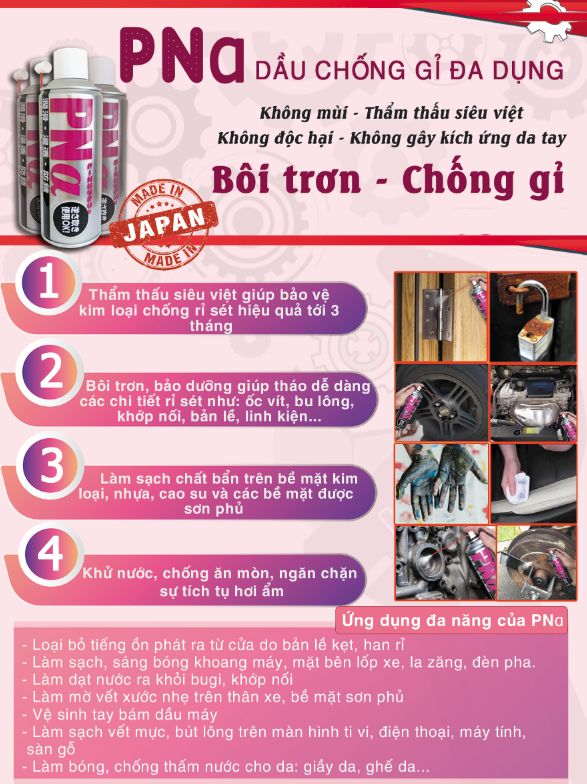 Mua tại TiktokDầu bôi trơn chống rỉ sét Pna không mùi Nhật Bản 420ml ***CÔNG DỤNG: