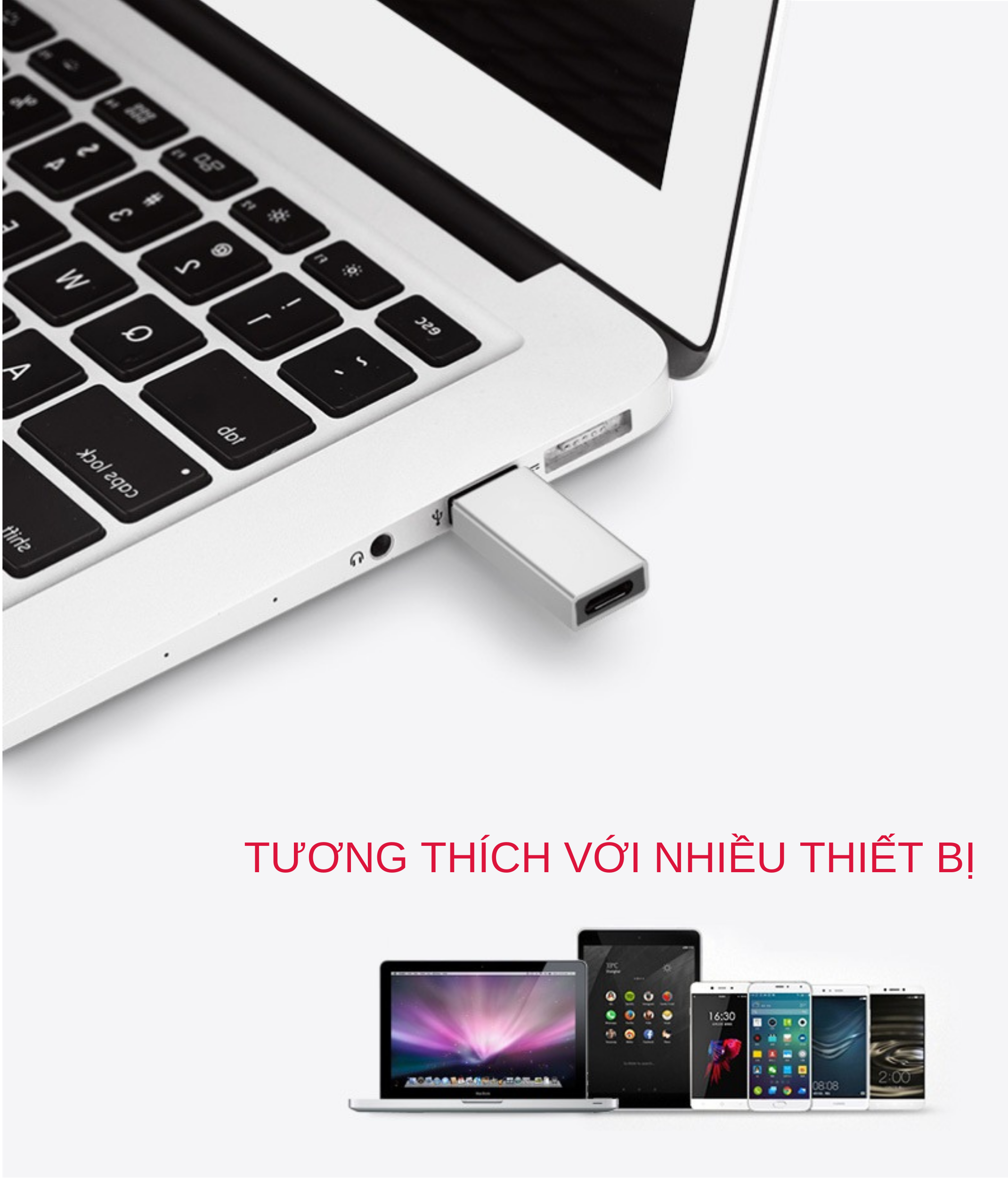- Chức năng : chuyển đổi cổng giao tiếp USB Type C thành cổng USB Type A - Dùng chuyển đổi cổng sạc pin và chia sẻ/ đồng bộ dữ liêu cho các thiết bị