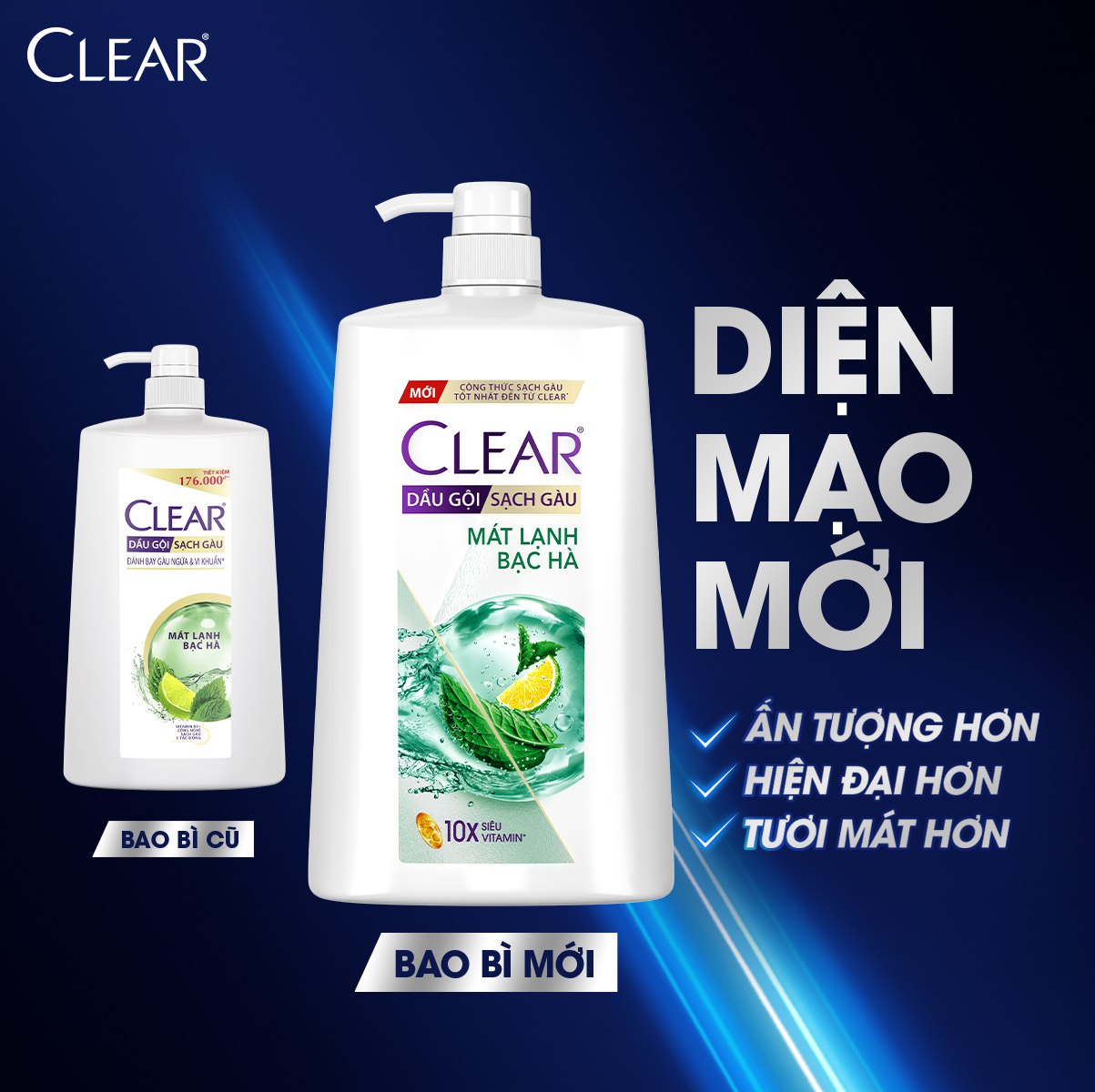 BAO BÌ THAY ĐỔI THEO TỪNG ĐỢT NHẬP HÀNG Dầu Gội Clear Sạch Gàu 1.4kg Mát Lạnh Bạc Hà 3x Sức Mạnh Đánh Bay Gàu, Ngứa, Vi Khuẩn Dầu gội sạch gàu Clear Mát Lạnh Bạc Hà 1,4kg - Clear thế hệ mới với bọt siêu mịn, giúp loại bỏ tất cả vảy gàu trên da đầu, giúp bạn tự tin, không còn lo vảy gàu xuất hiện trên tóc & vai áo - Clear thế hệ mới với 10X Niacinamide dưỡng ẩm chuyên sâu cho lớp tế bào dưới da đầu, từ đó tăng cường hàng rào bảo vệ da đầu. Khi da đầu khỏe mạnh, vi khuẩn gàu (mà luôn tồn tại trên da đầu) không dễ dàng tấn công, từ đó ngăn gàu quay lại tối đa - Công thức đã được kiểm nghiệm, không gâu kích ứng da đầu - Hiệu quả đã được kiểm nghiệm  + 97% Người tiêu dùng tin rằng gàu sẽ không trở lại + 98% Đồng ý rằng da đầu khoẻ mạnh hơn + 99% Cảm thấy mát lạnh và sảng khoái lâu hơn. *Dựa trên kiểm nghiệm với hơn 250 người Việt Nam.    ƯU ĐIỂM NỔI BẬT:  ''CÔNG THỨC SẠCH GÀU TỐT NHẤT ĐẾN TỪ CLEAR" - Bọt siêu mịn sạch sâu giúp đánh bay gàu & bã nhờn*. - 10X Siêu vitamin B3 (Niacinamide)+ giúp tăng cường độ ẩm tự nhiên trên da đầu. - Công thức chứa bạc hà cho bạn cảm giác mát lạnh sảng khoái sau mỗi lần gội và kéo dài suốt 48 giờ + So với hàm lượng Niacinamide⁺ trong công thức trước đây của Clear.  Vảy gàu nhìn thấy được trên tóc và da đầu khi dùng thường xuyên. Nhờn trên bề mặt da đầu. Ngứa do gàu. (Dựa trên kết quả trong điều kiện thí nghiệm)  HƯỚNG DẪN SỬ DỤNG:  Thoa đều dầu gội lên tóc & da đầu, xoa bóp nhẹ nhàng, gội sạch với nước. Khuyên dùng hàng ngày.  CHÚ Ý:  Để xa tầm tay trẻ em, tránh tiếp xúc với mắt. Nếu sản phẩm dính vào mắt, rửa kĩ với nước.  ĐIỀU KIỆN BẢO QUẢN:  Tránh nhiệt độ cao & ánh nắng trực tiếp. hiệu quả trông thấy.
