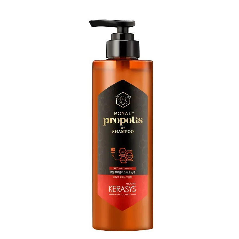 - Red Propolis: Dành cho tóc mềm yếu, thiếu sức sống được chiết xuất từ: Sữa ong chúa, nụ tầm xuân và tinh dầu hoa hồng Dầu gội/xả Kerasys Royal Propolis (phục hồi tóc hư tổn nặng) Dầu gội thảo dược Kerasys Salon care Straightening Shampoo: Giúp tóc mềm mượt, vào nếp Là một sản phẩm thuộc dòng Salon Care của hãng Kerasys hàng đầu Hàn Quốc có tác dụng phục hồi tóc. Dầu gội/xả Kerasys Royal Propolis cao cấp với thành phần Protein tự nhiên chiết xuất từ cây Moringa phục hồi và củng cố cấu trúc tóc Lipit bổ sung thêm giúp giảm 79% tóc gãy rụng và chẻ ngọn, mang lại sức sống mới cho sợi tóc hư tổn nặng hay tóc nhuộm vẫn giữ nguyên dược mầu. Kerasys Royal Propolis được sản xuất dưới quy trình khắt khe tăng 2.5 lần dưỡng tóc, giúp tóc chắc khỏe, suôn mượt. Sau khi sử dụng, tóc sẽ được bảo vệ bởi 1 lớp màng mỏng tránh hư tổn từ các tác động bên ngoài đồng thời rất êm dịu, không gây kích ứng cho da đầu. Hướng dẫn sử dụng Làm ướt tóc, lấy một lượng dầu vừa đủ ra lòng bàn tay thoa đều lên tóc, massage tóc và da đầu nhẹ nhàng trong vài phút, sau đó xả sạch bằng nước Hướng dẫn bảo quản: Bảo quản nơi khô mát, tránh nhiệt độ ngoài trời Tránh xa tầm với trẻ em. Rửa sạch bằng nước khi sản phẩm vào mắt. Hạn sử dụng: 3 năm kể từ ngày sản xuất