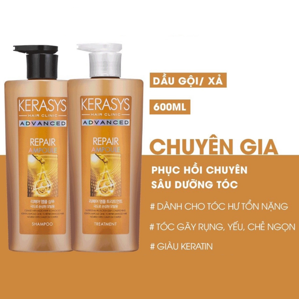 ✨Dầu gội xả phục hồi chuyên sâu dưỡng tóc hư tổn nặng Kerasys Advanced Repair Ampoule Hàn Quốc 600ml