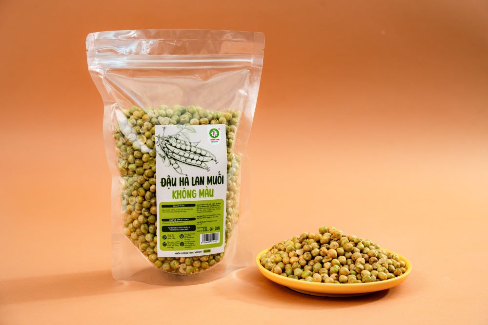 ĐẬU HÀ LAN MUỐI THÀNH PHẦN : Đậu hà lan (84%), dầu đậu nành tinh luyện, đường tinh luyện, muối i-ốt (1%), màu thực phẩm tổng hợp: Brilliant Blue FCF, hương thực phẩm tổng hợp : hương đậu SẢN XUẤT THEO: 15/HKDCSBMTL1/2021 THỜI HẠN SỬ DỤNG : 12 Tháng kể từ ngày sản xuất CHỈ TIÊU CHẤT LƯỢNG: Độ ẩm ≤ 8% HƯỚNG DẪN SỬ DỤNG VÀ BẢO QUẢN: HƯỚNG DẪN BẢO QUẢN: DÙNG NGAY SAU KHI MỞ BAO BÌ. HƯỚNG DẪN SỬ DỤNG: DÙNG NGAY SAU KHI MỞ BAO BÌ. THÔNG TIN CẢNH BÁO: KHÔNG SỬ DỤNG SẢN PHẨM KHI ĐÃ HẾT HẠN SỬ DỤNG GIẤY CHỨNG NHẬN HACCP SỐ 21.4256 – HACCP/VC DO TRUNG TÂM GIÁM ĐỊNH VÀ CHỨNG NHẬN HỢP CHUẨN HỢP QUY VIETCERT ĐÁNH GIÁ CHỨNG NHẬN PHÙ HỢP TIÊU CHUẨN