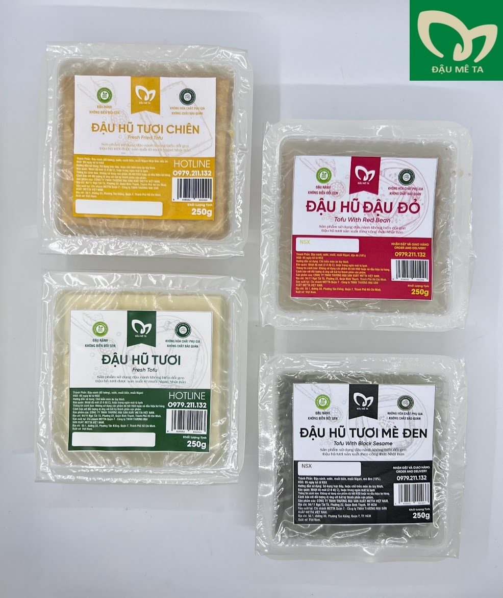 Với sản phẩm tươi sống, trọng lượng thực tế có thể chênh lệch khoảng 10%. ĐẬU HŨ TƯƠI VỊ CHIÊN 250g Thành Phần: Đậu nành (đỗ tương), Nước, Muối biển Nigari, Dầu ăn HSD: 5 ngày kể từ ngày sản xuất Bảo quản: Nhiệt độ mát (2-8 độ C), hoặc trong ngăn mát tủ lạnh Thông tin cảnh bảo: Không sử dụng sản phẩm đã hết HSD hoặc có dấu hiệu hư hỏng. Cảnh báo dị ứng với bất kỳ thành phần nào của sản phẩm CÔNG TY TNHH THƯƠNG MẠI SẢN XUẤT METTA VIỆT NAM Chuyên sản xuất cung cấp ĐẬU HŨ TƯƠI NGUYÊN CHẤT Nguồn đậu nành KHÔNG biến đổi genNguồn gốc xuất xứ nguyên liệu rõ ràng, đảm bảo theo tiêu chuẩn quy địnhĐậu Hũ được làm từ muối Nigari Nhật BảnChuyên cung cấp cho Nhà Hàng, Quán Ăn, CafeNhà xưởng máy móc hiện đại, đáp ứng chuẩn tiêu chuẩn phân khúc nhà hàng, quán ăn