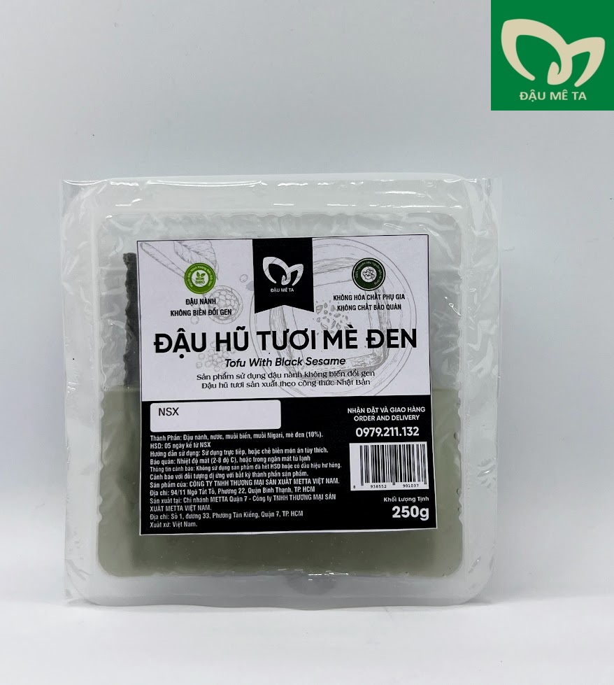 Mua tại TiktokVới sản phẩm tươi sống, trọng lượng thực tế có thể chênh lệch khoảng 10%. ĐẬU HŨ TƯƠI MÈ ĐEN 250g Thành Phần: Đậu nành (đỗ tương), Nước, Muối biển Nigari, Mè đen (10%) HSD: 5 ngày kể từ ngày sản xuất Bảo quản: Nhiệt độ mát (2-8 độ C), hoặc trong ngăn mát tủ lạnh Thông tin cảnh bảo: Không sử dụng sản phẩm đã hết HSD hoặc có dấu hiệu hư hỏng. Cảnh báo dị ứng với bất kỳ thành phần nào của sản phẩm.