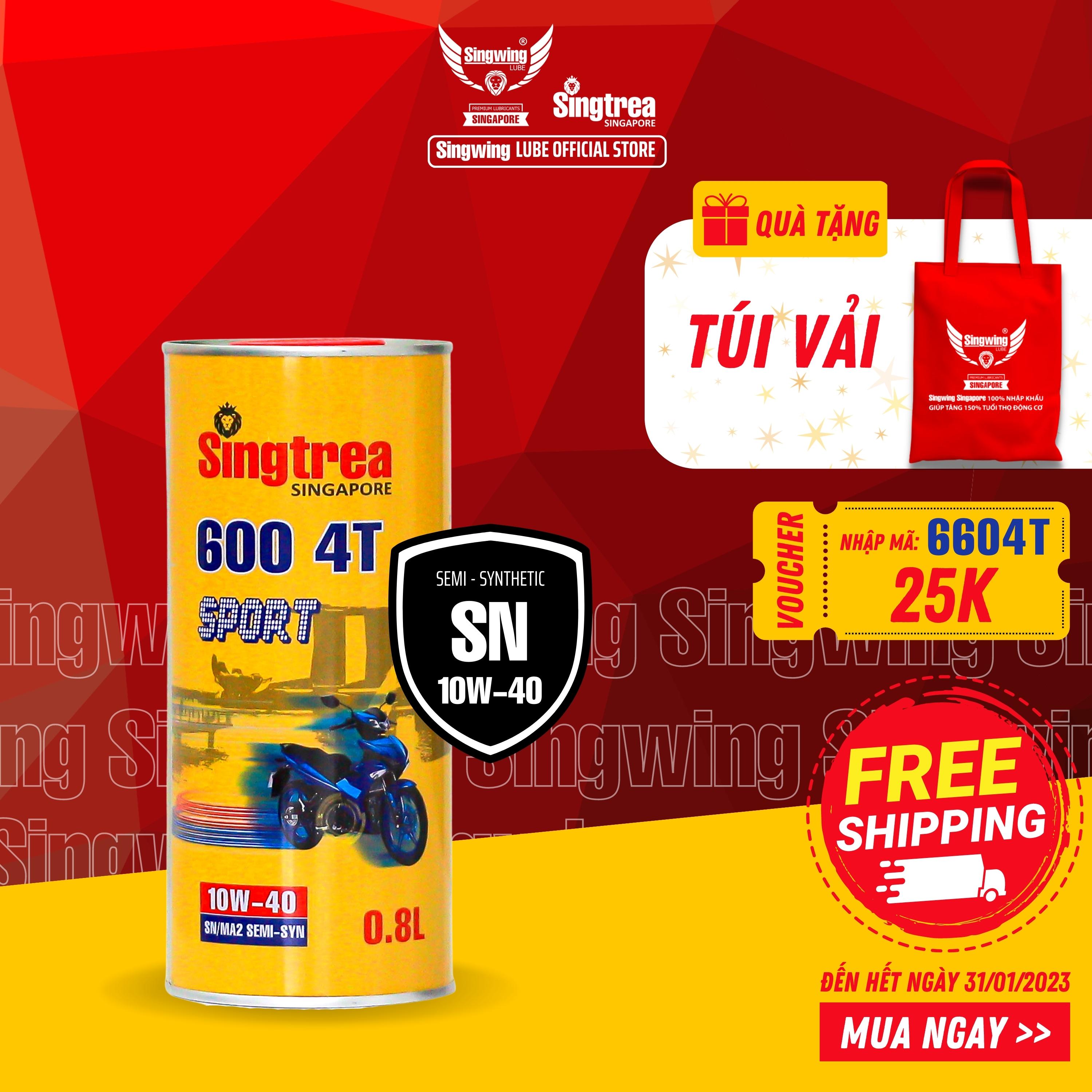 ✨Dầu nhớt xe máy Singtrea 600 SPORT 4T 10W-40 SN/MA2 0.8L dành cho xe số