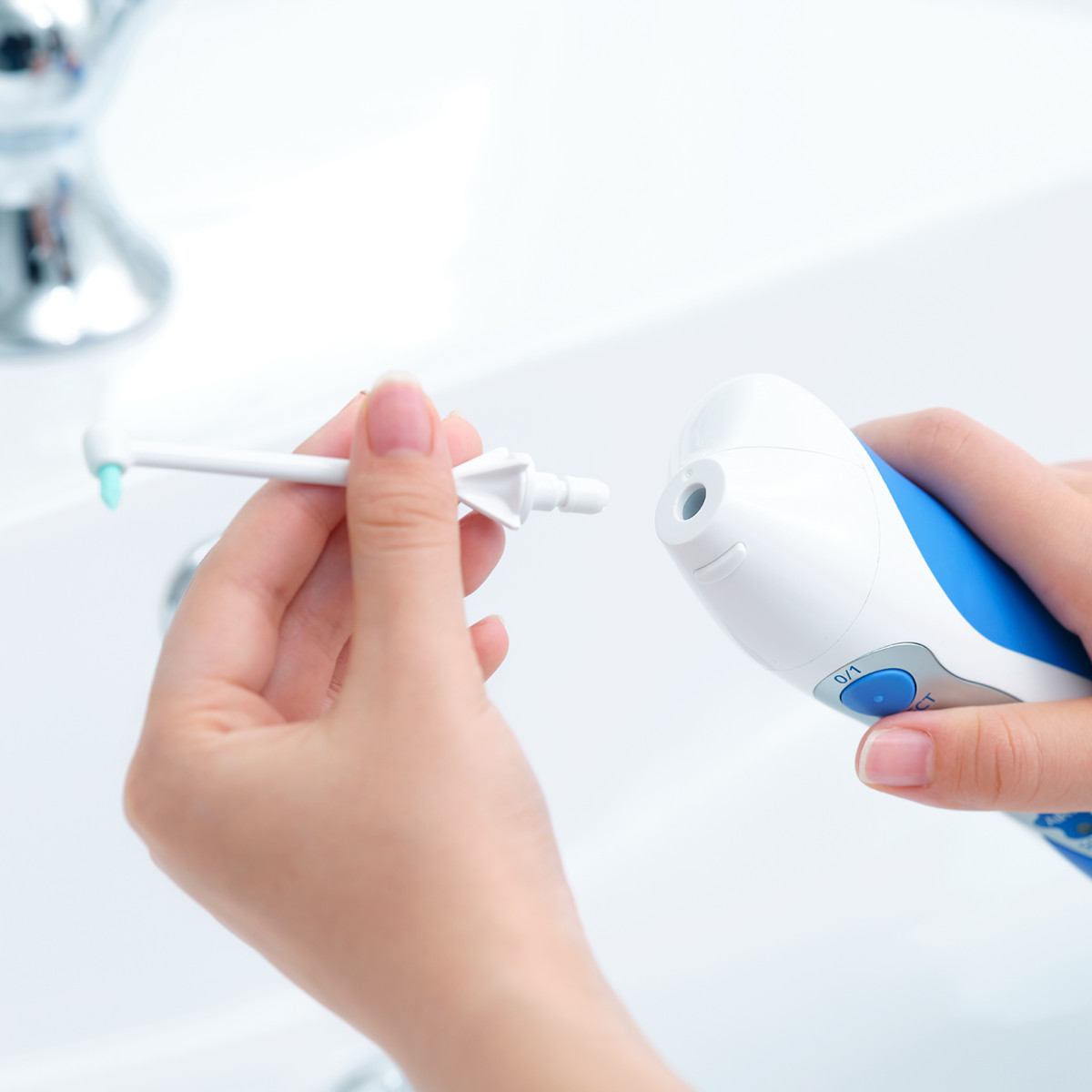 - Đầu dẫn nước bằng cao su mềm tác động nhẹ nhàng trên nướu. - Dễ dàng tháo lắp trên tay cầm - Làm sạch răng kỹ lưỡng. - Làm trôi mảng bám trên tối