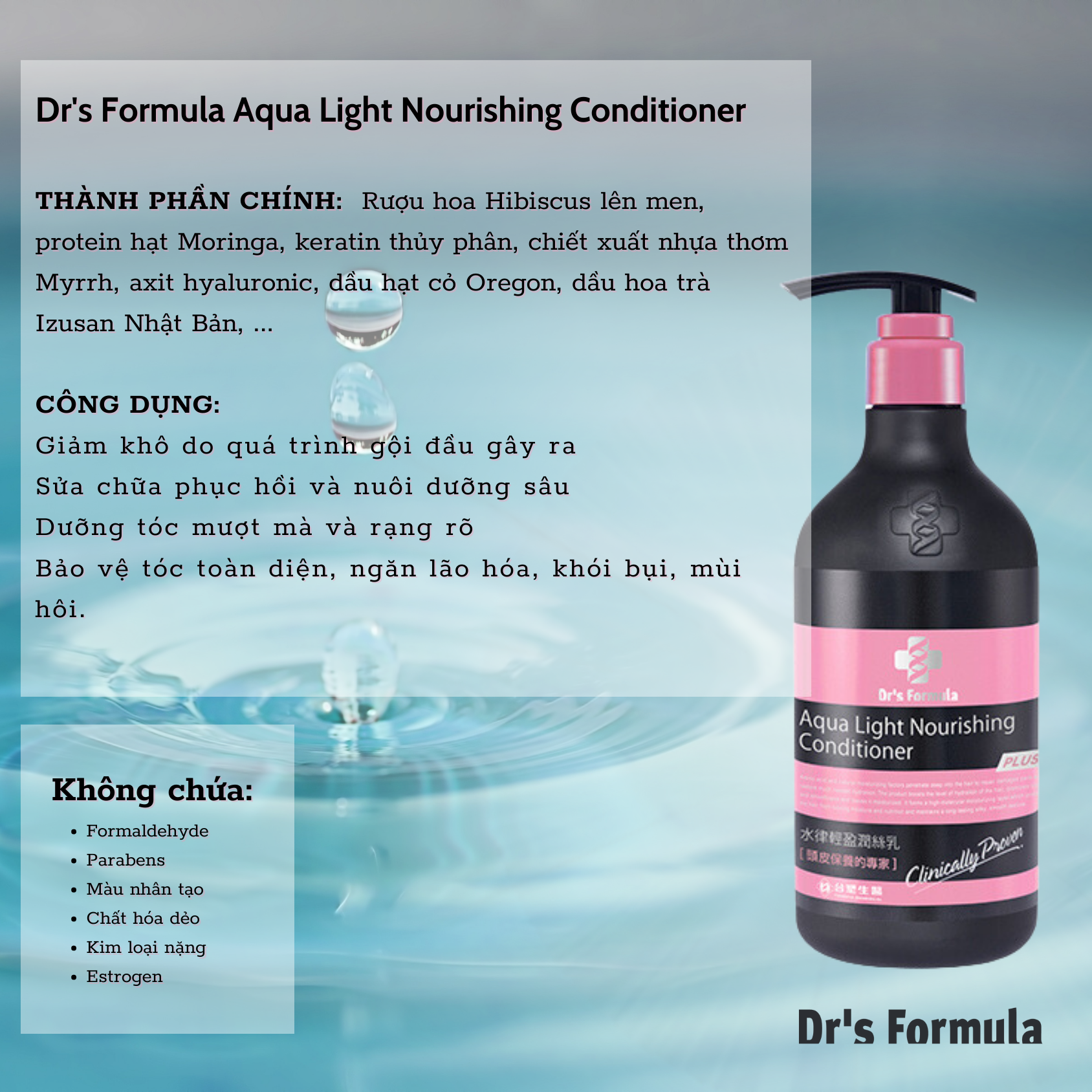 ✨Dầu Xả Dưỡng Tóc Bóng Mượt Dr's Formula Aqua Light Nourishing Conditioner 530g