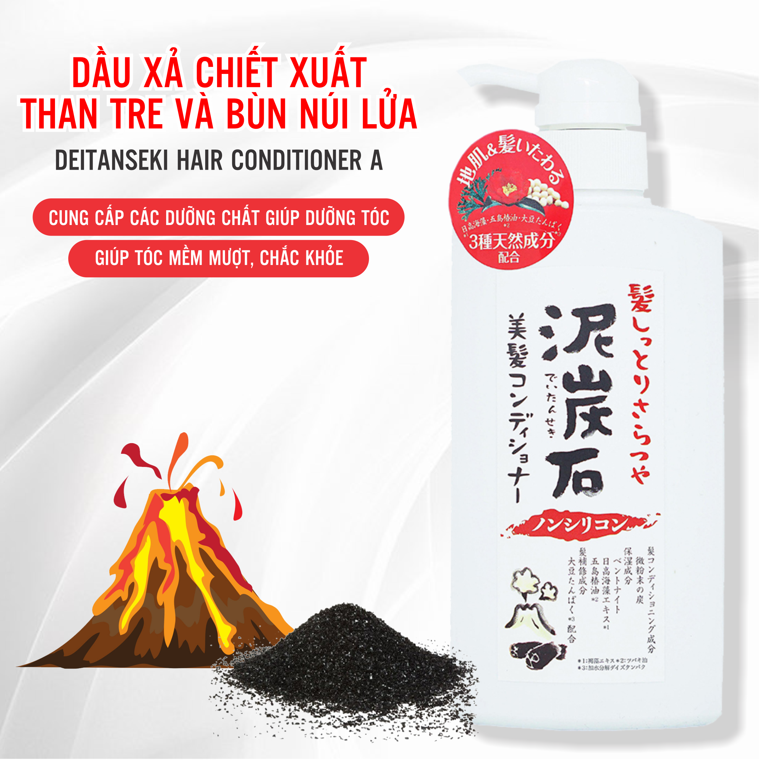 Dầu Xả Deitanseki Hair Conditioner Chiết Xuất Than Tre Và Bùn Núi Lửa A (Chai 500ml)