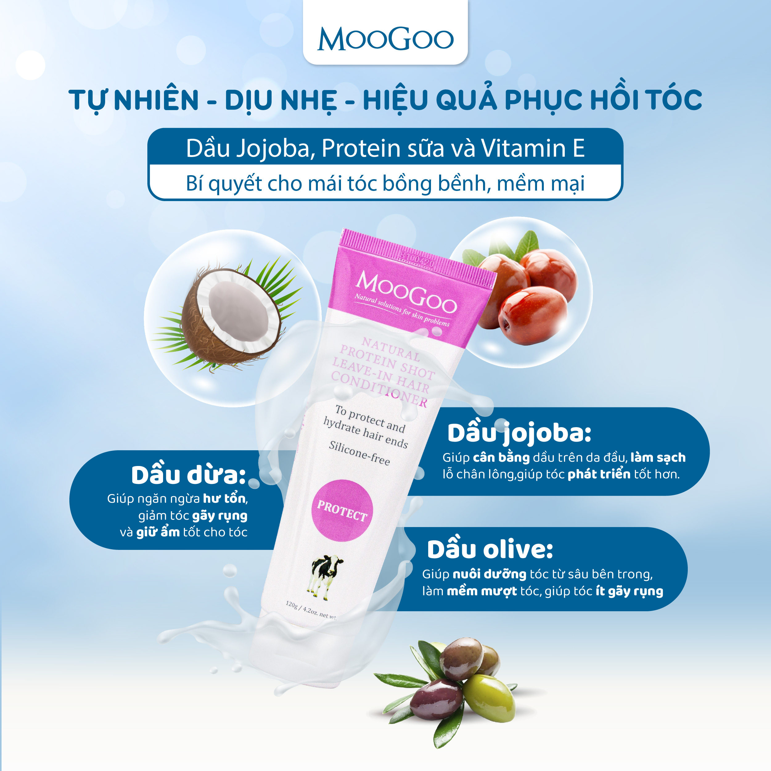 - Dầu dừa: Cung cấp dưỡng chất cần thiết cho tóc và da đầu, giúp tóc suôn mượt và dễ chải. Sản phẩm không chứa các thành phần silicone thường thấy trong các loại dầu xả khác, tránh tình trạng tích tụ trên tóc, giúp tóc không bị nặng hay xẹp. Moogoo Protein Shot Leave-In Conditioner cũng là lựa chọn hoàn hảo cho tóc xoăn, giúp kiểm soát và giữ nếp tóc một cách tự nhiên. Ưu điểm nổi bật: