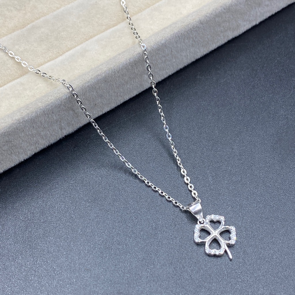 Dây Chuyền Bạc 925 Kiểu Dây Xoắn Kép Cỏ 4 Lá May Mắn Chính Hãng Bạc Hiểu Minh DMD517