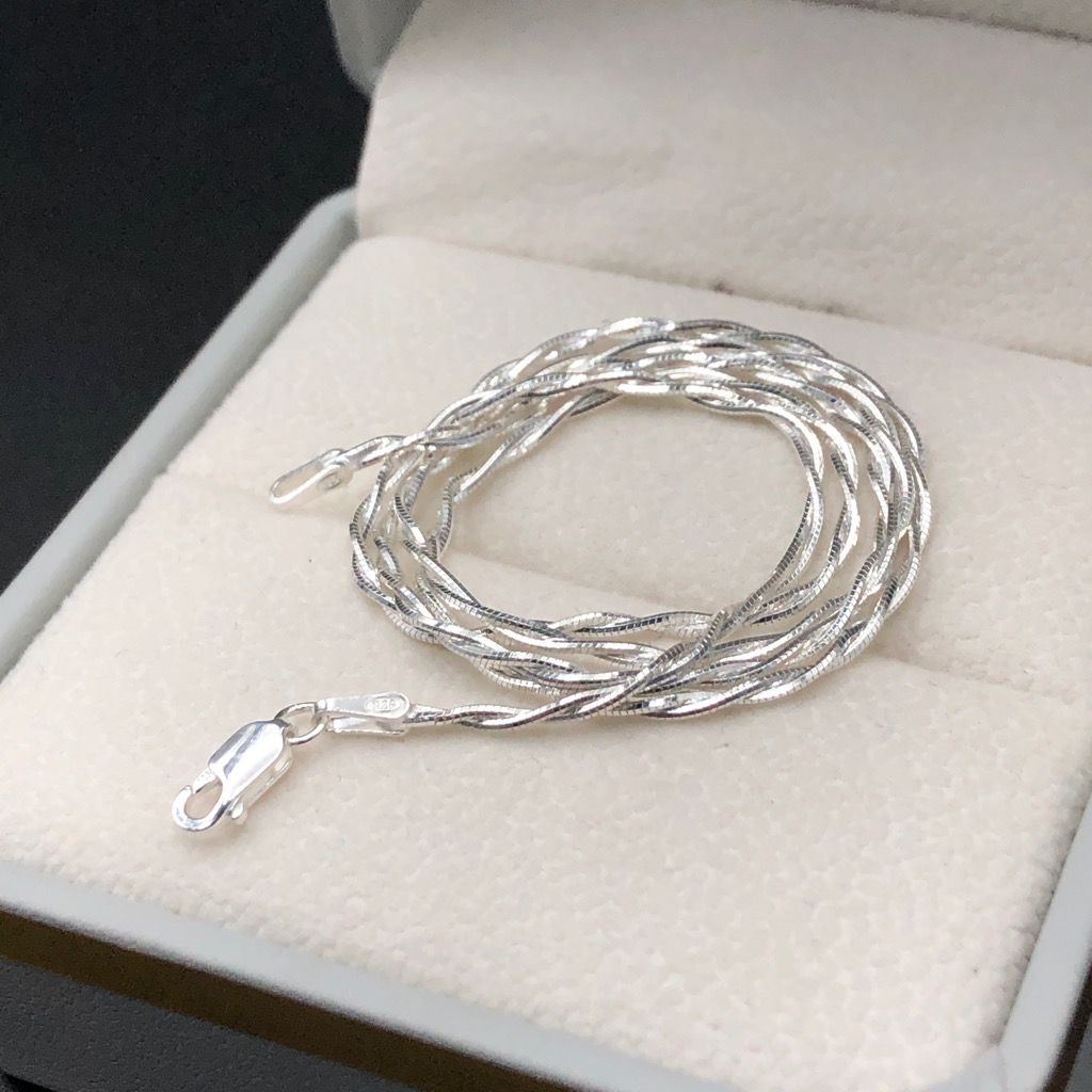 Dây Chuyền Vòng Cổ Nữ Bạc 925 Dây Mì Xoắn Kép Bạc Hiểu Minh DCN258