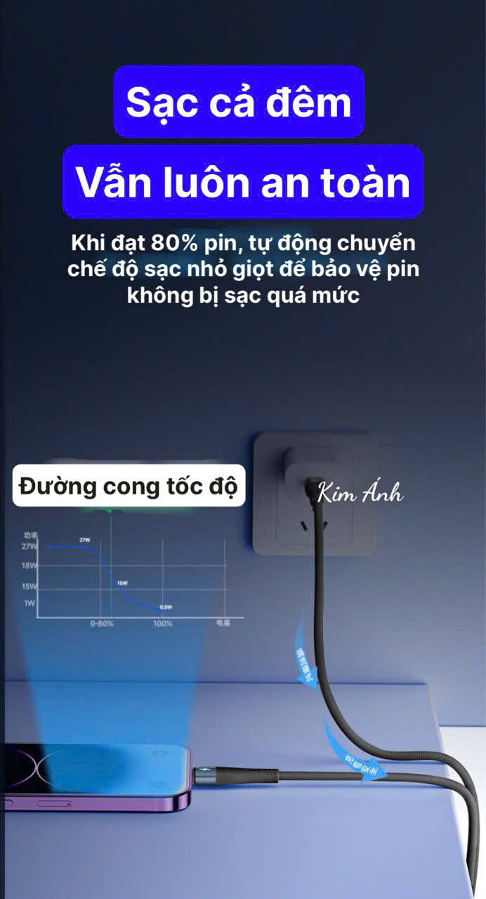 Sạc 80% trong 30 phút, không cần chờ đợi lâu, chị đạt 80% pin sẽ chuyển chế độ sạc nhỏ giọt để đảm bảo pin không bị nóng, và ổn định pin không bị sạc quá mức