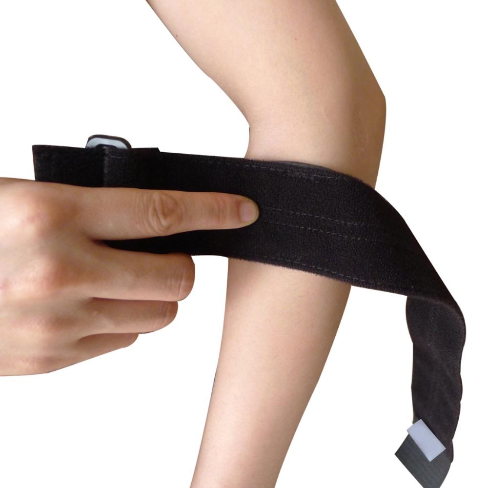 - Giảm áp lực tới khuỷu tay trong trị các trấn thương như: viêm, rách nhẹ của cơ và gân ngay dưới khuỷu tay. - Hỗ trợ giảm căng cơ khi chơi thể thao. BẢO QUẢN: - Có thể giặt tay với nước có xà phòng sau khi sử dụng. - Phơi khô nơi thoáng mát. HƯỚNG DẪN SỬ DỤNG: - Đặt miếng đệm xuống vào phần cơ như hình bên. - Đeo dây, điều chỉnh độ căng bằng cách kéo căng miếng Velcro và dán vào dây.