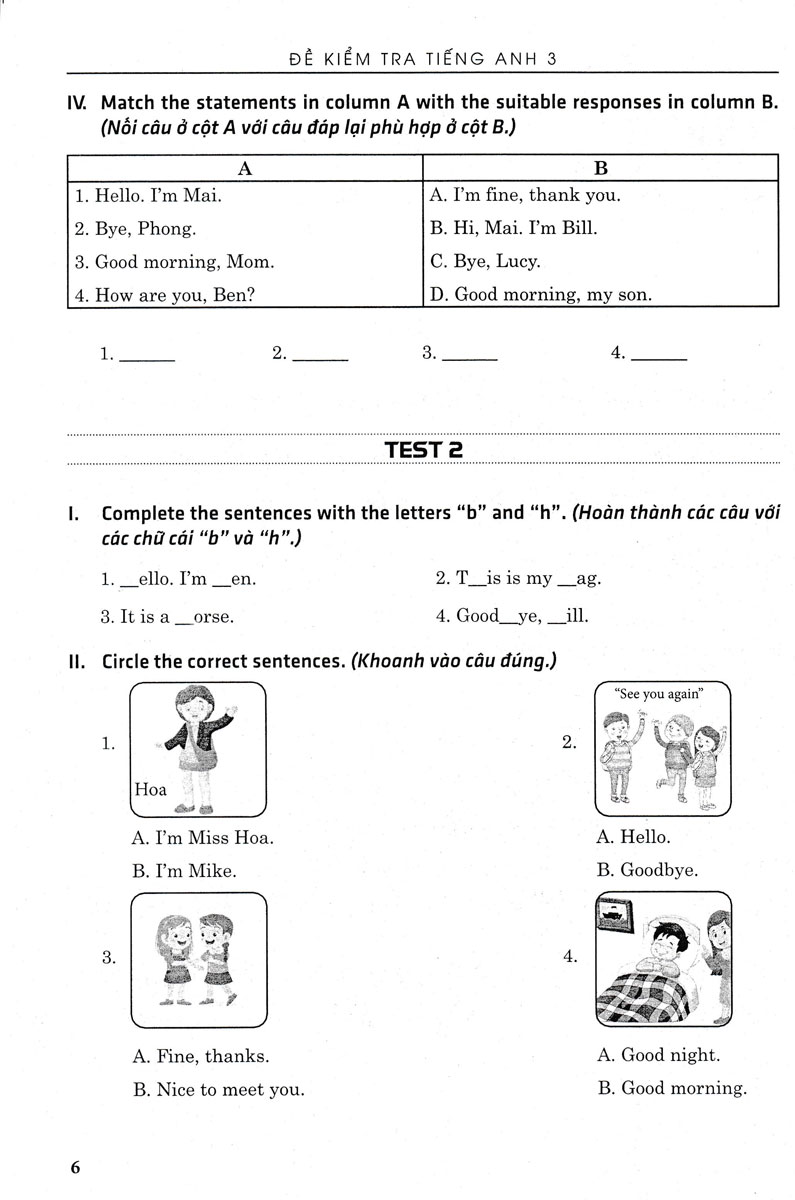 Cuốn sách Đề Kiểm Tra Tiếng Anh 3 - Có Đáp Án (Biên Soạn Theo Chương Trình GDPT Mới) này là một tài liệu cần thiết cho các em trong việc ôn tập và củng cố kiến thức để chuẩn bị cho các bài kiểm tra đánh giá thường xuyên và các bài kiểm tra, cuối kì môn Tiếng Anh lớp 3.
