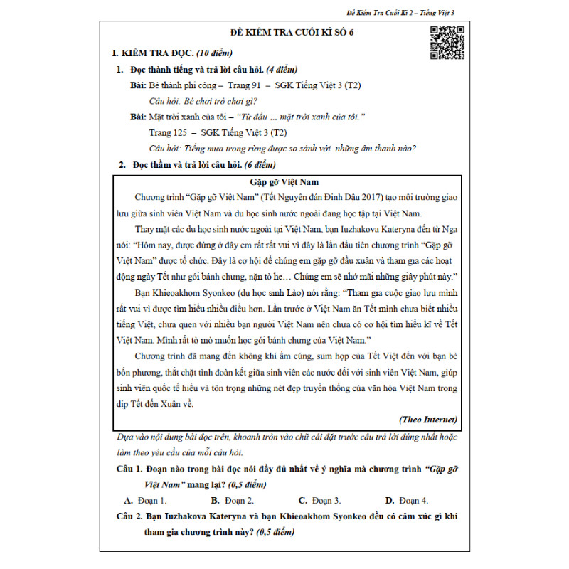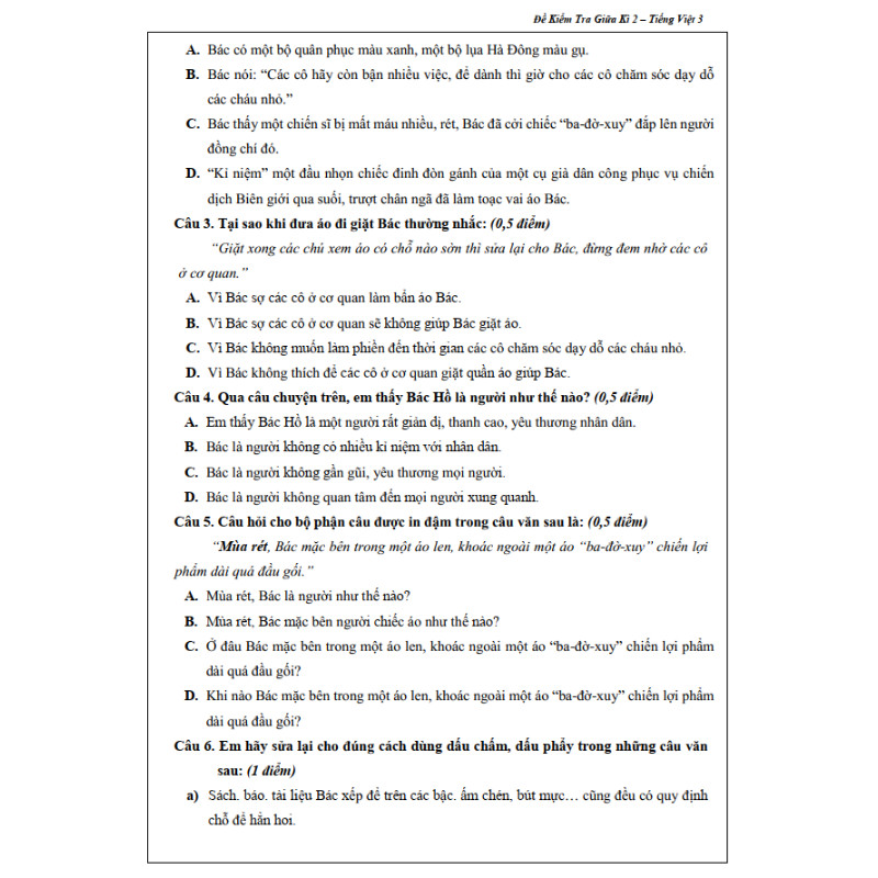 Đề Kiểm Tra Tiếng Việt 3 - Tập 2 là bộ gồm 5 đề giữa kì và 15 đề cuối kì theo chương trình sách giáo khoa hiện hành lớp 3.