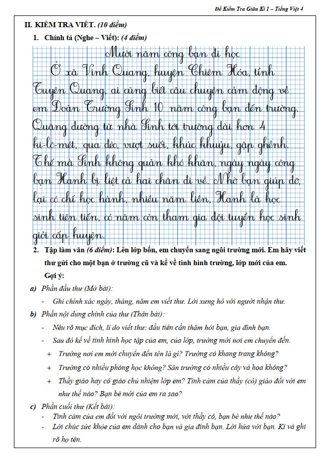 Đề Kiểm Tra Tiếng Việt 4 - Tập 1 là bộ gồm 5 đề giữa kì và 15 đề cuối kì theo chương trình sách giáo khoa hiện hành lớp 4.