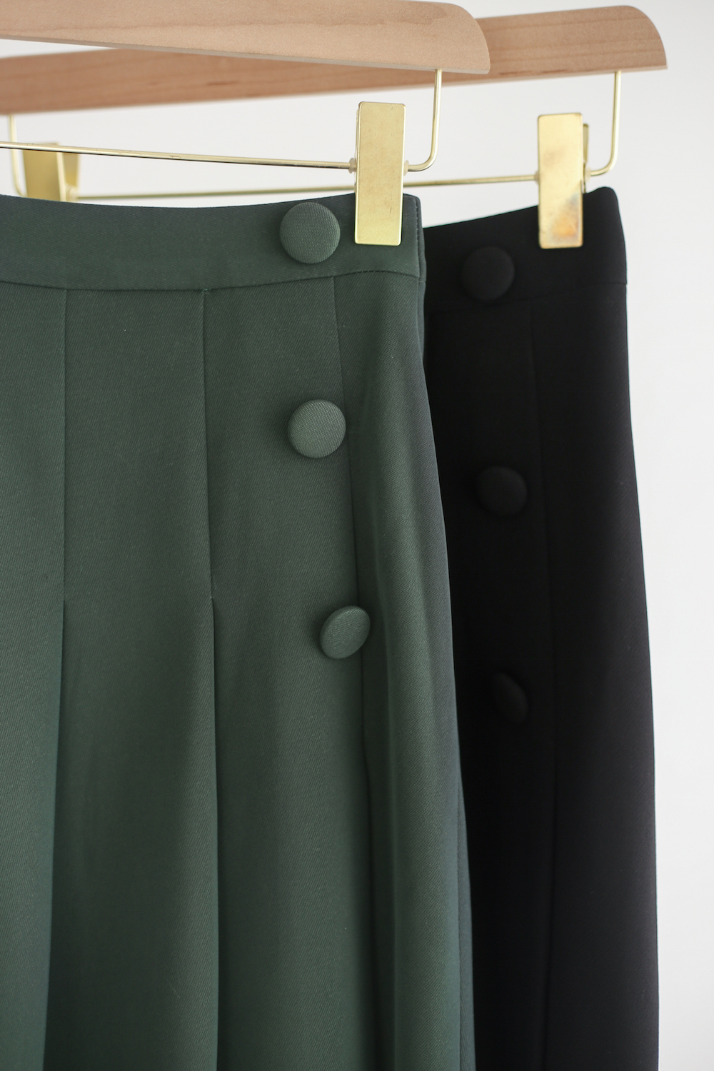 ✨De Leah - Chân Váy Midi Xếp Li Cúc Bọc - Đen